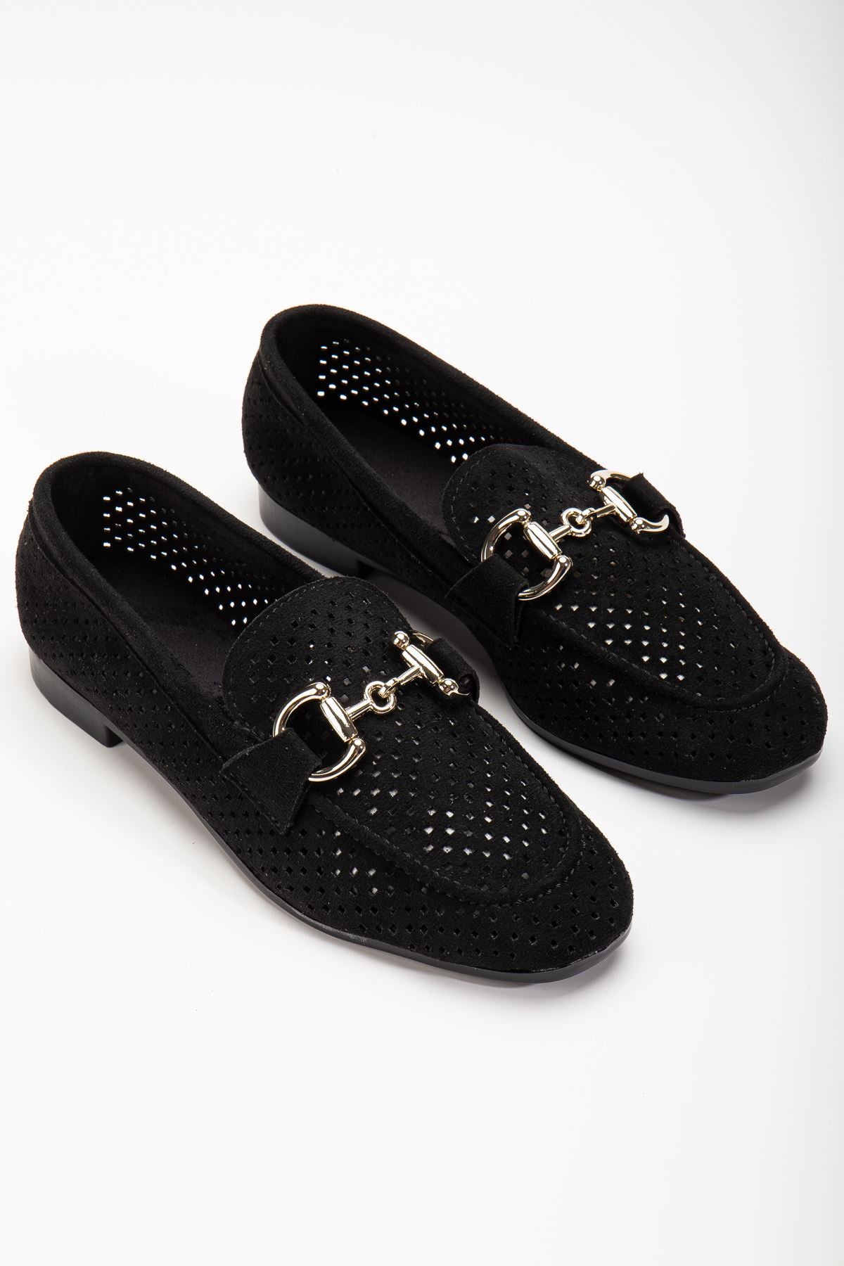 Ayakkabı Aşkı 401 Siyah Süet Delikli Günlük Kadın Babet