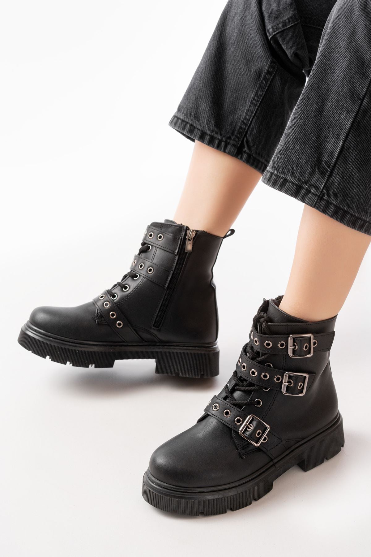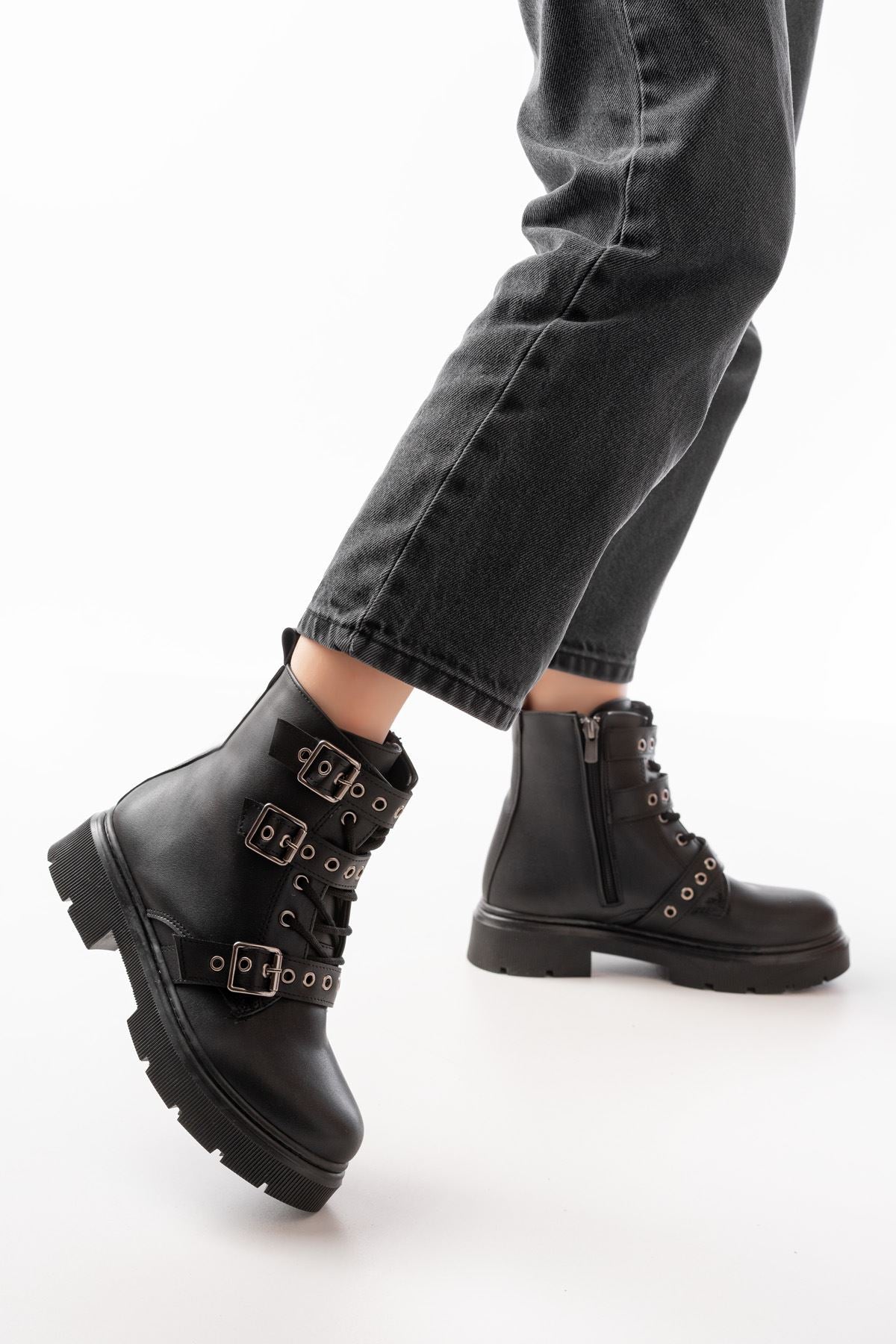 Ayakkabı Aşkı Siyah Toka Aksesuarlı Fermuarlı Günlük Kadın Bot