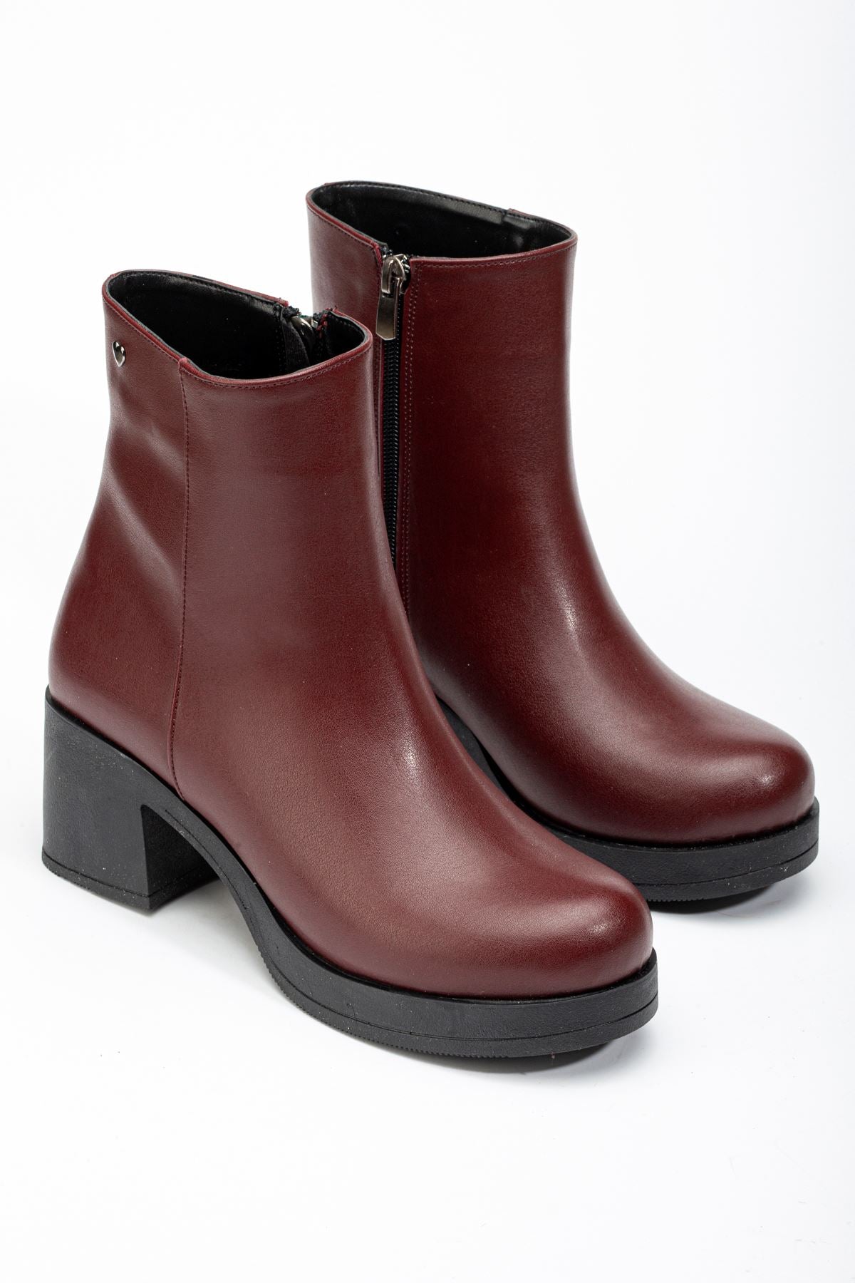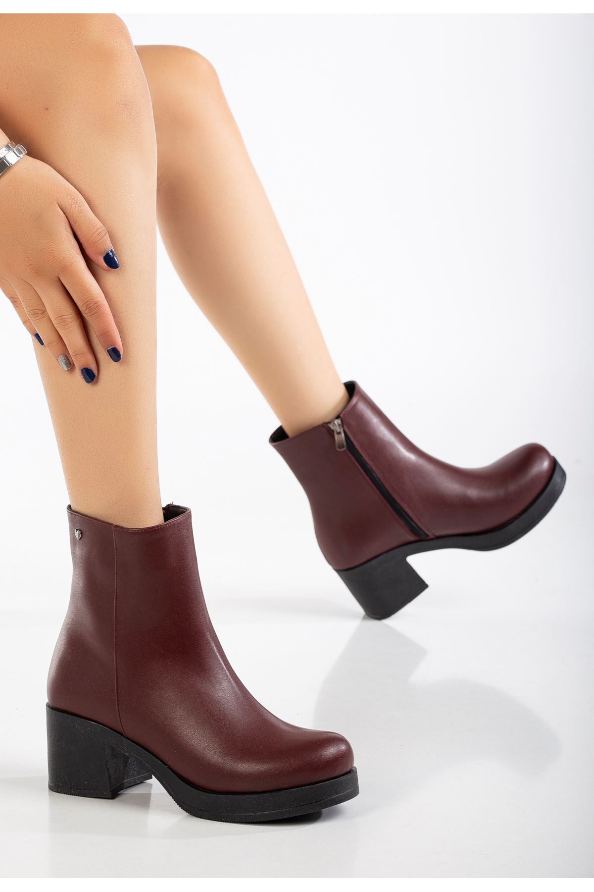 Ayakkabı Aşkı Bordo Fermuarlı Kalın Topuklu Günlük Kadın Bot