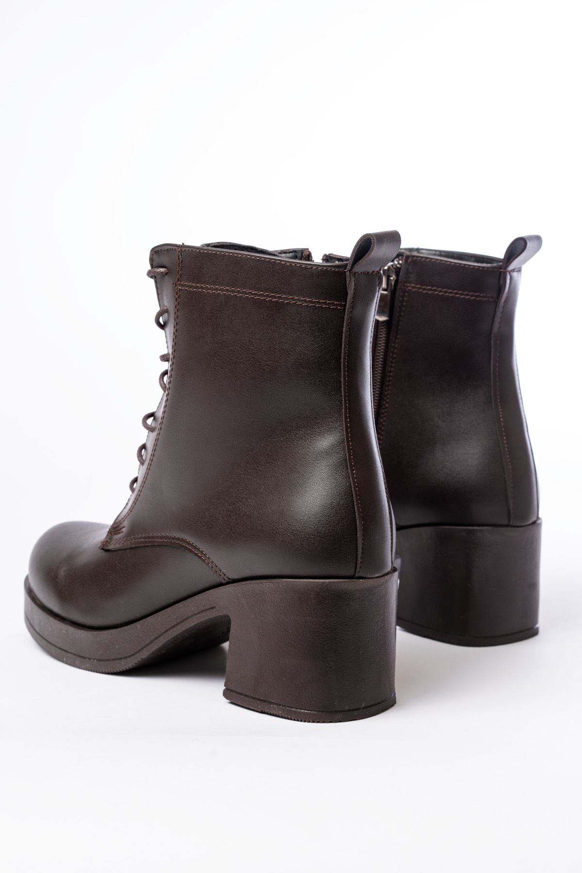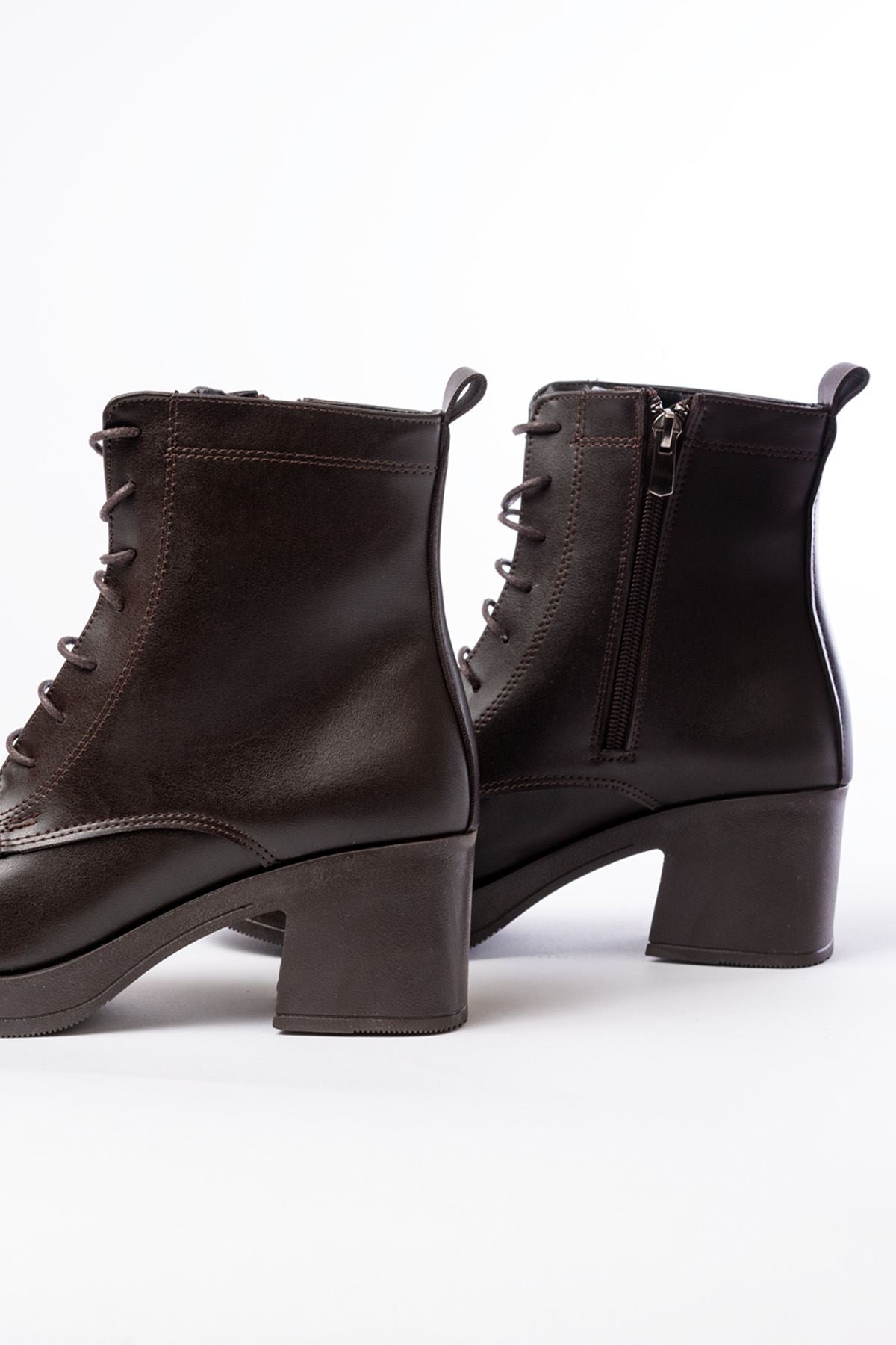 Ayakkabı Aşkı Kahverengi Bağcıklı Fermuarlı Kalın Topuklu Günlük Kadın Bot