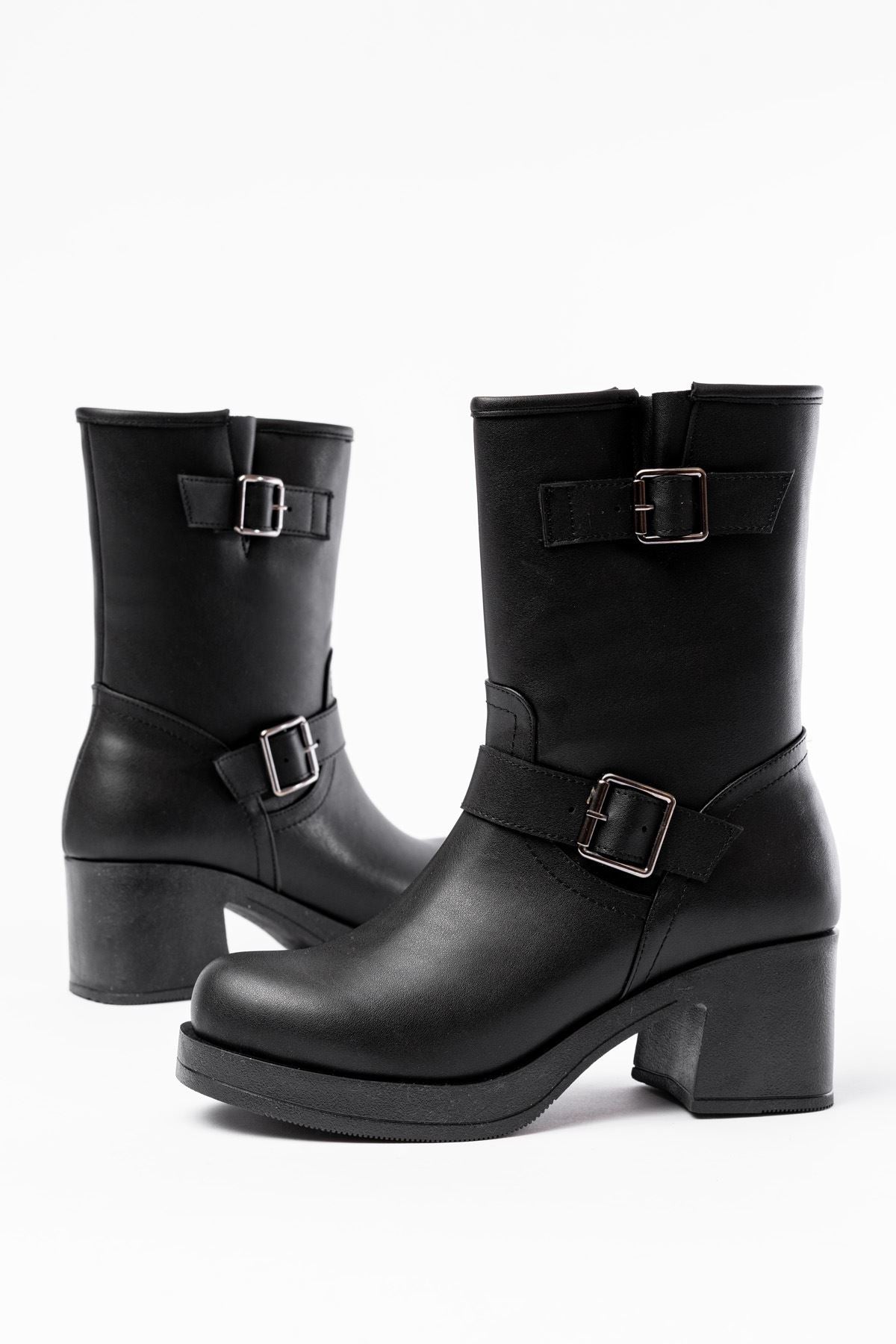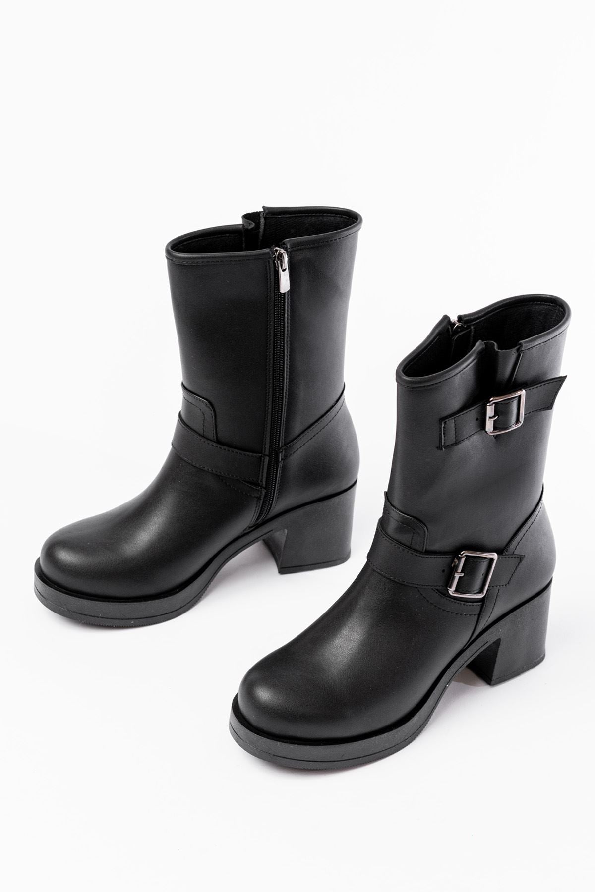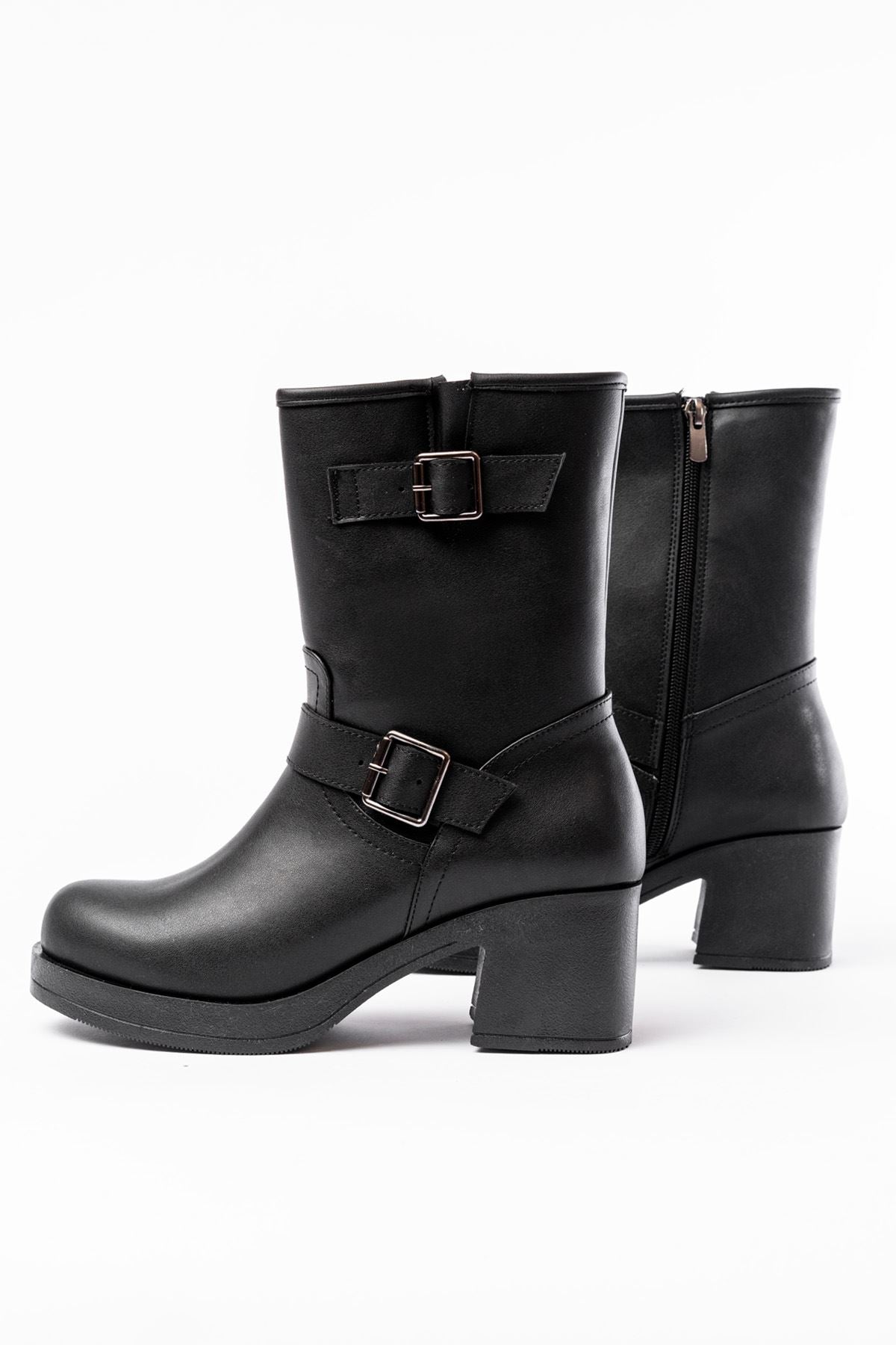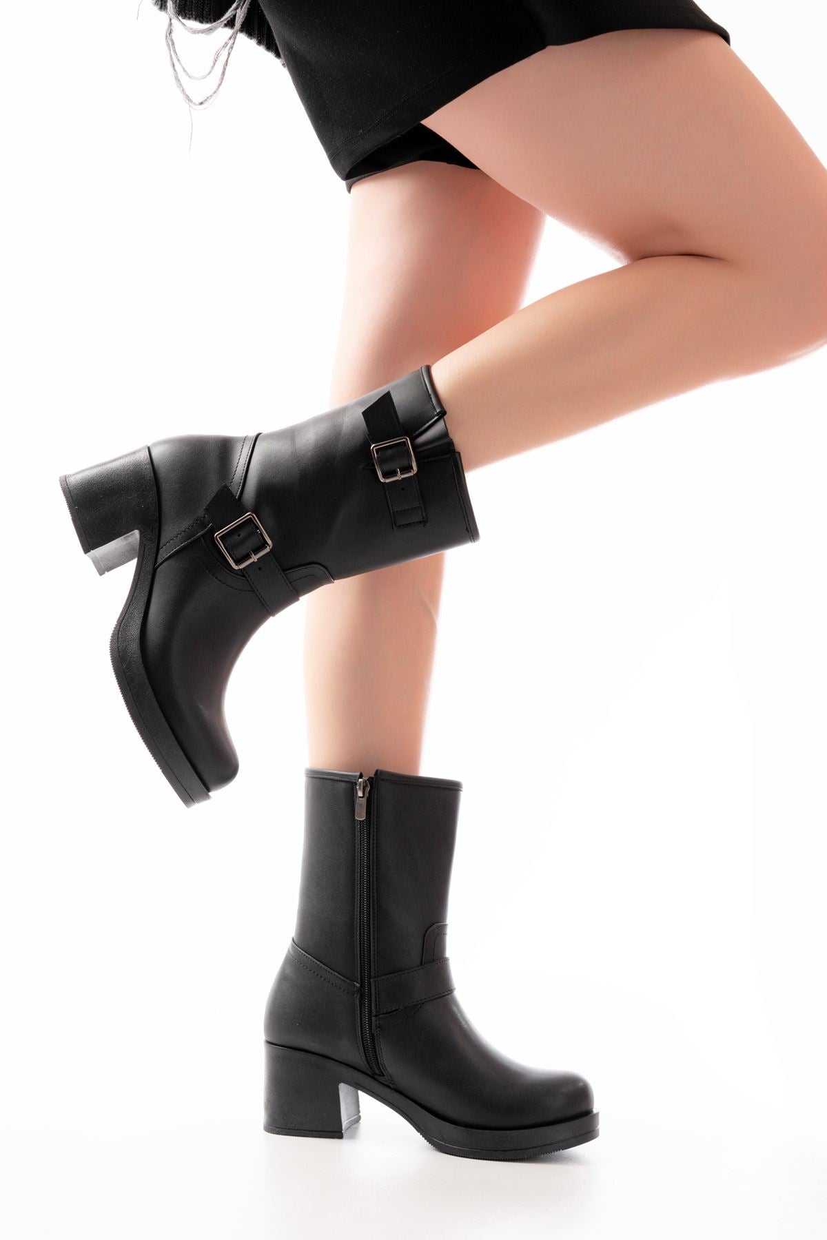 Ayakkabı Aşkı Siyah Toka Aksesuarlı Fermuarlı Kalın Topuklu Günlük Kadın Bot