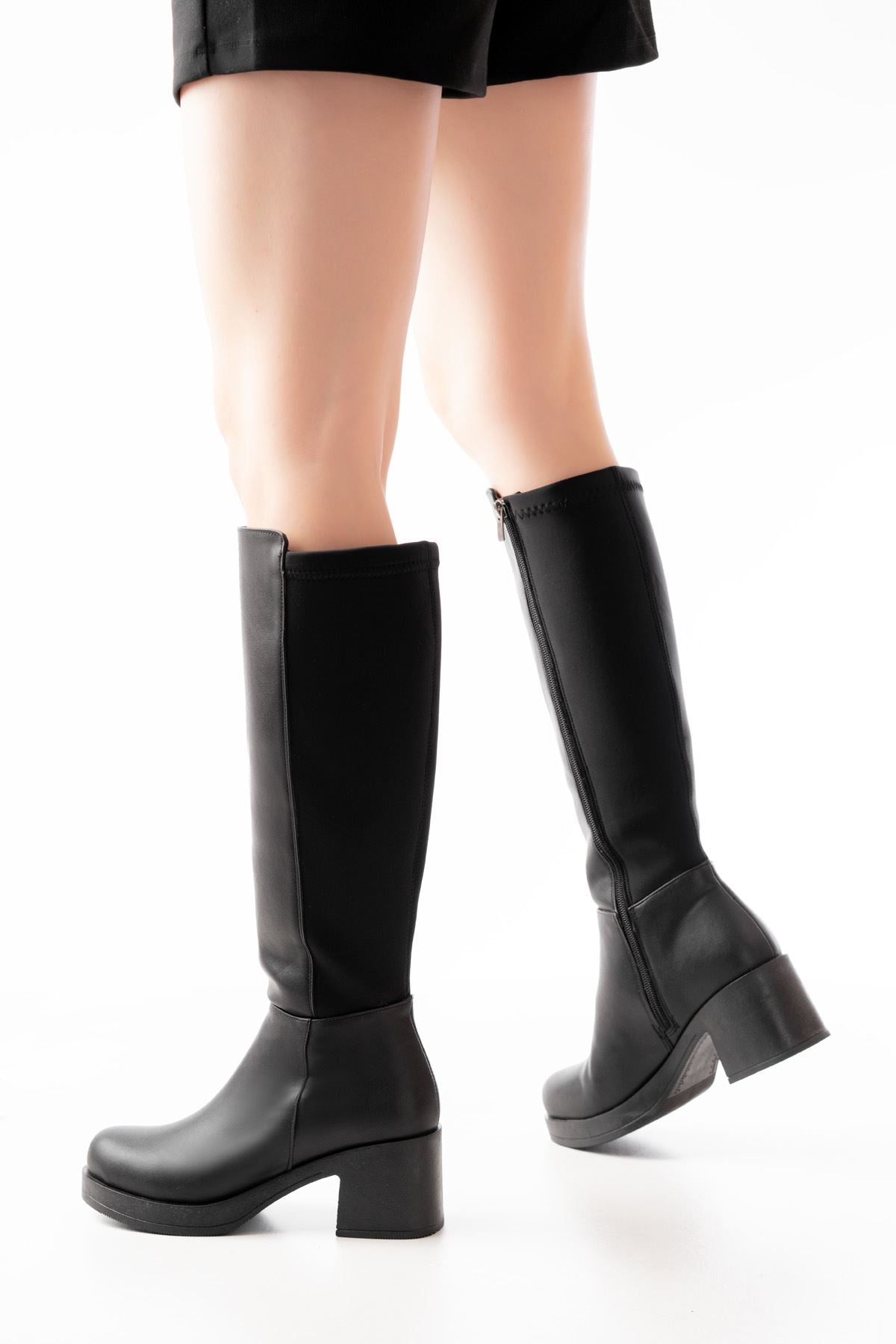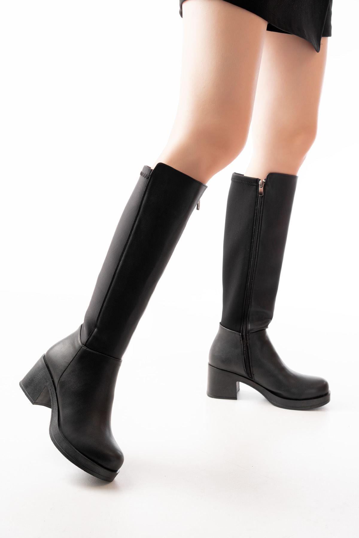 Ayakkabı Aşkı Siyah Topuklu Fermuarlı Günlük Kadın Çizme