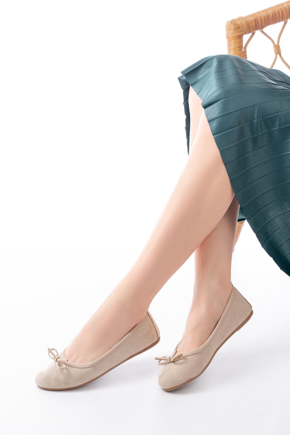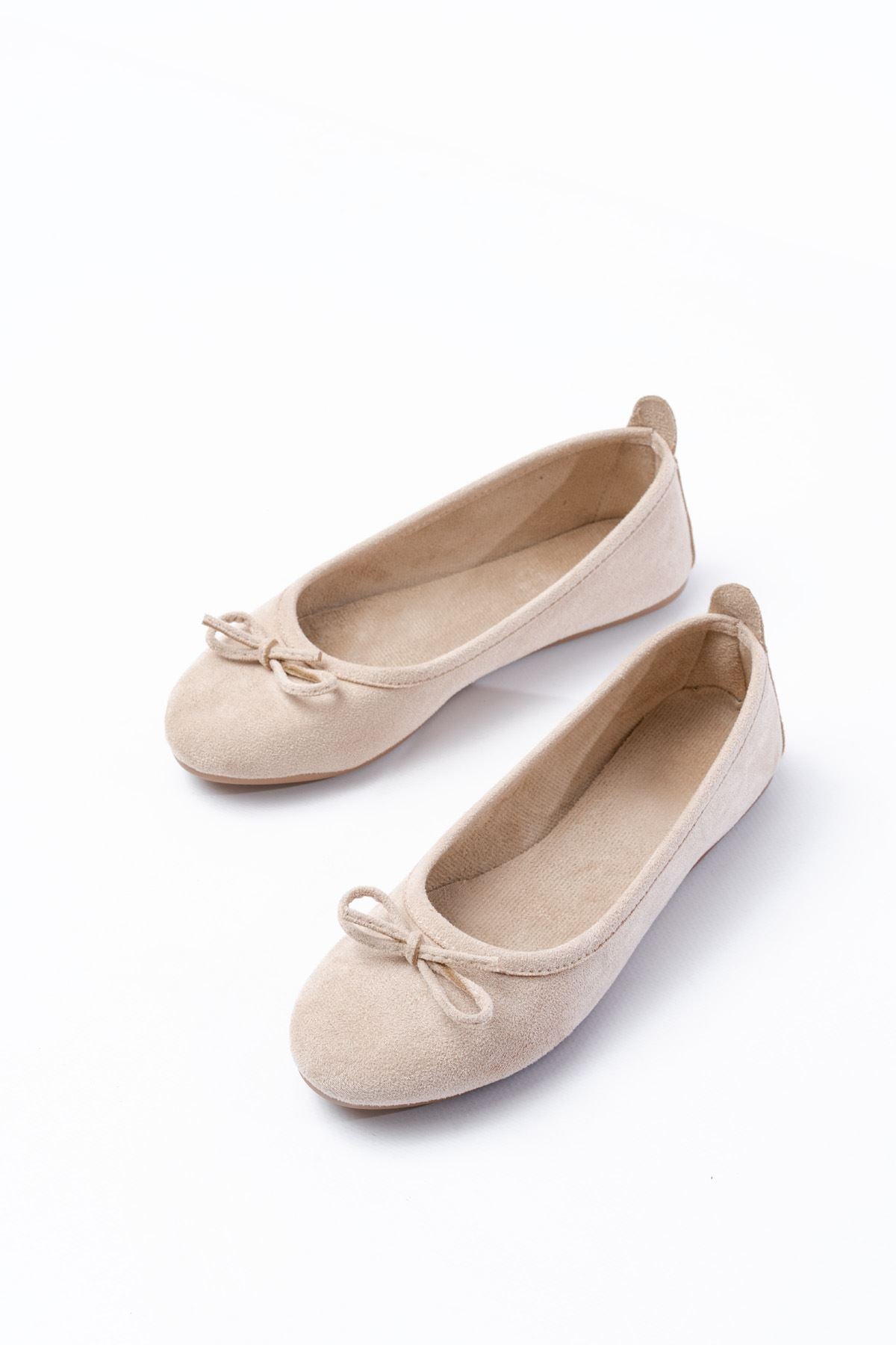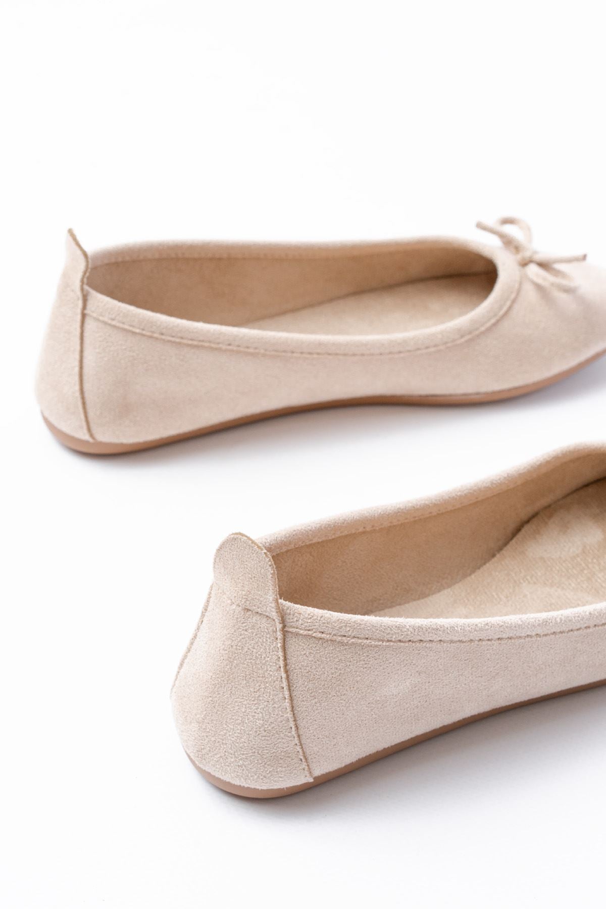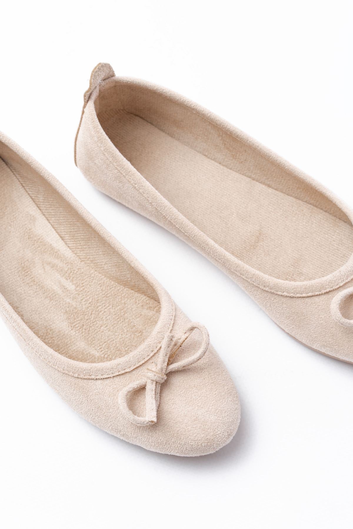 Ayakkabı Aşkı 6101 Bej Süet Fiyonklu Günlük Kadın Babet