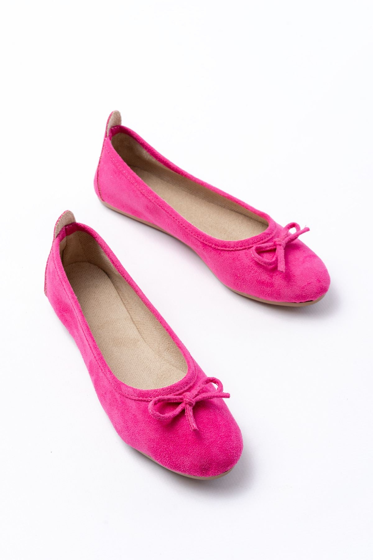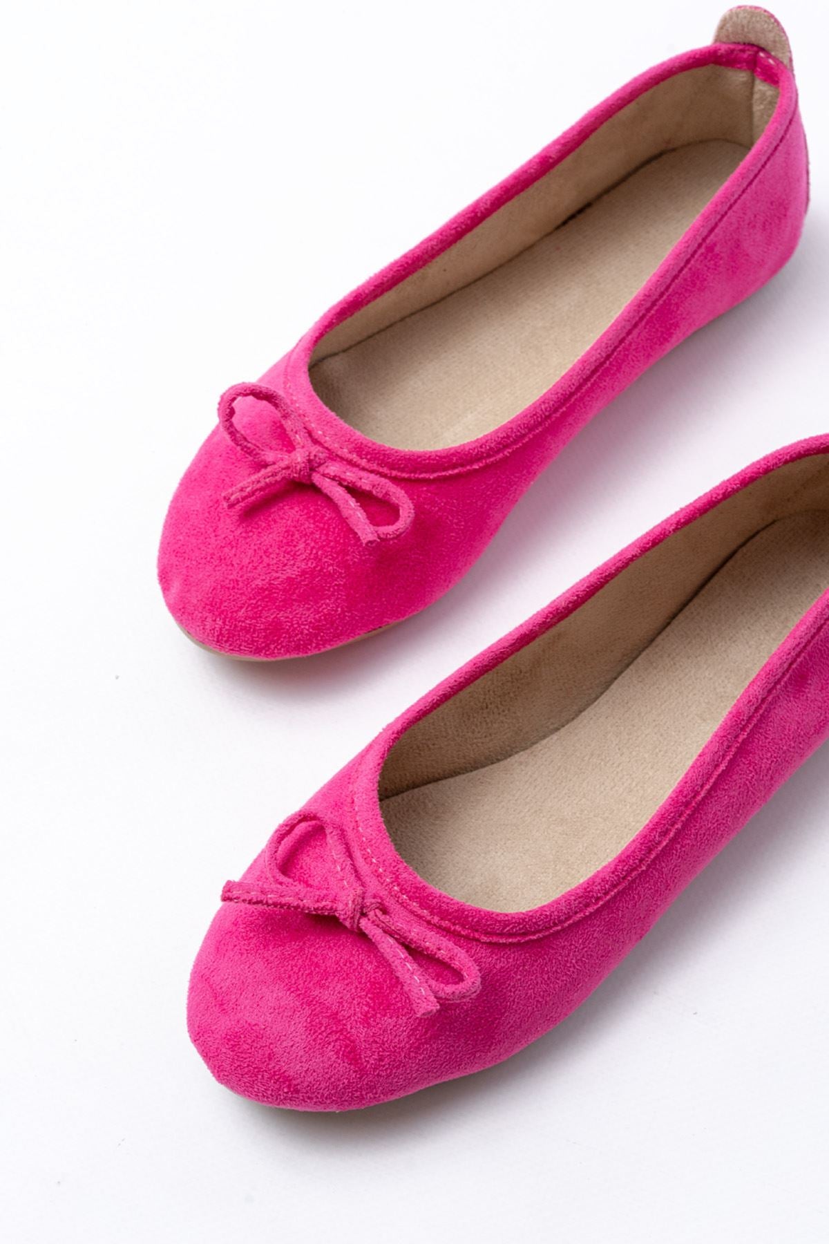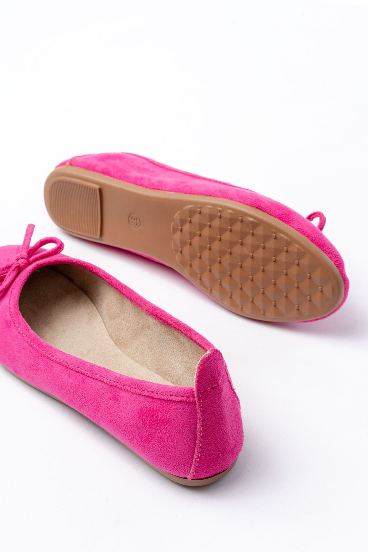 Ayakkabı Aşkı 6101 Fuşya Süet Fiyonklu Günlük Kadın Babet