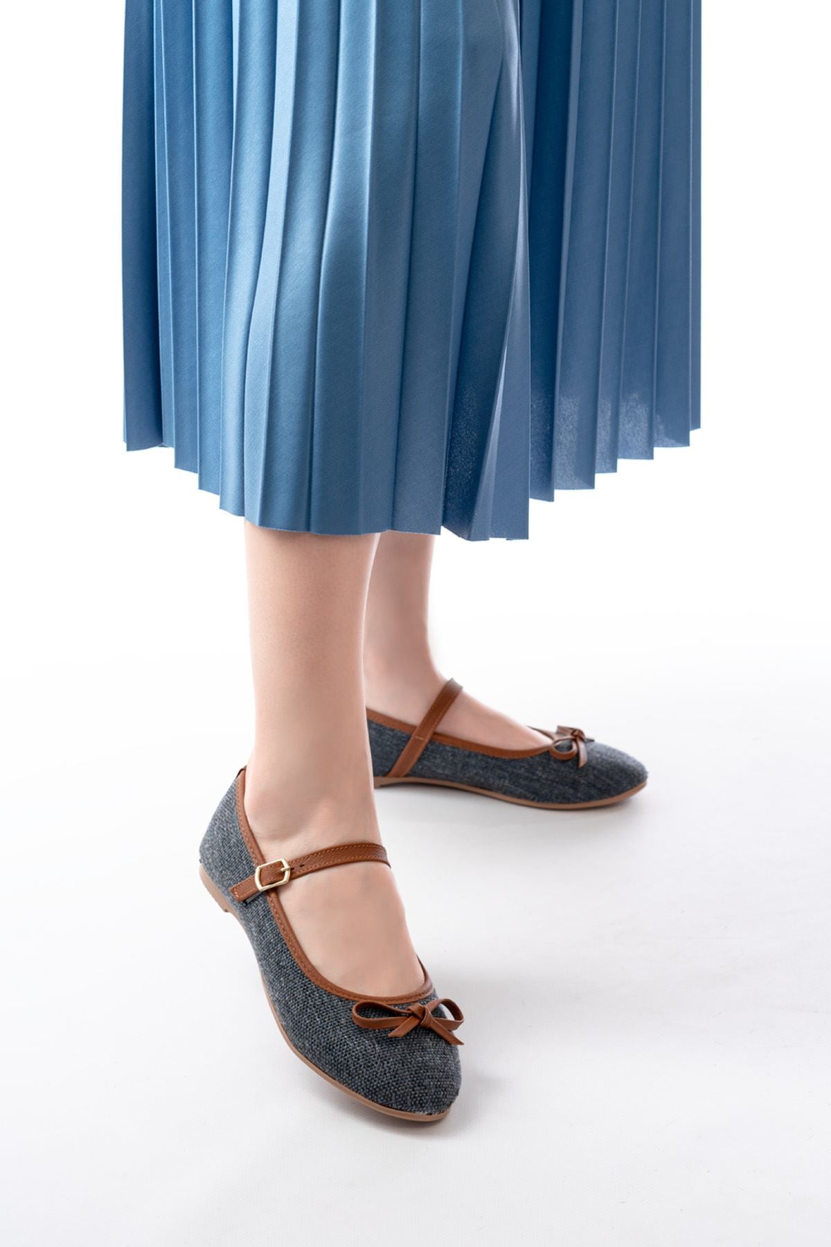 Ayakkabı Aşkı 6321 Laci Keten Günlük Baret Tokalı Bayan Babet