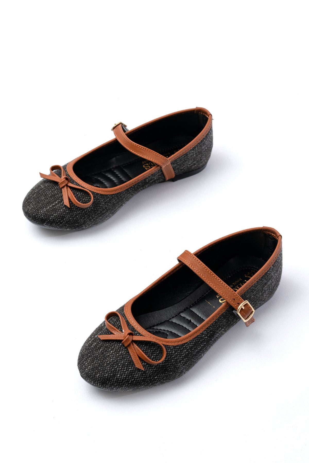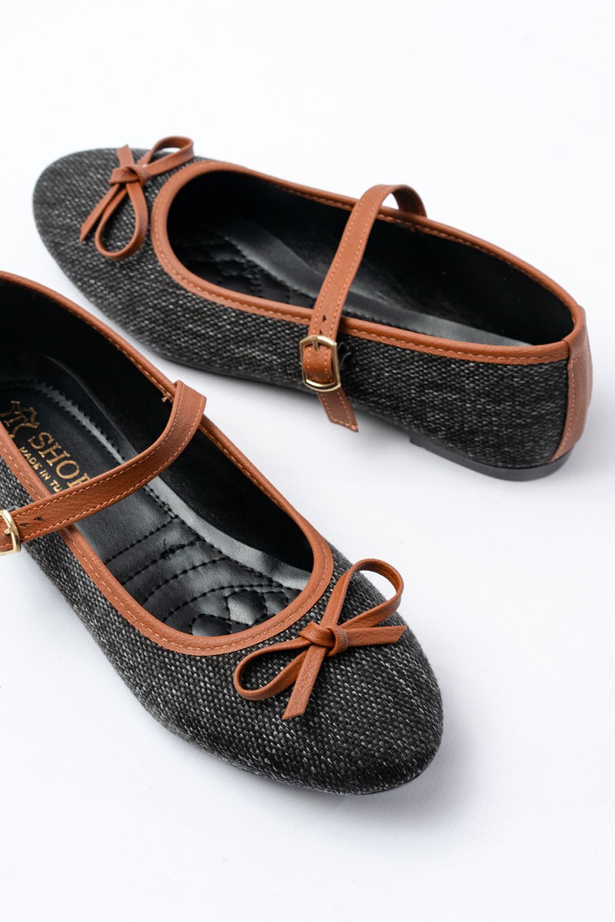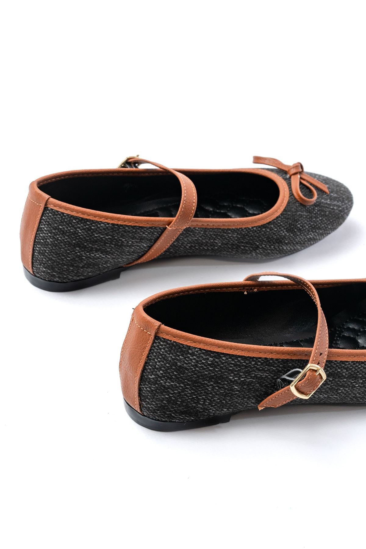 Ayakkabı Aşkı 6321 Siyah Keten Günlük Baret Tokalı Bayan Babet