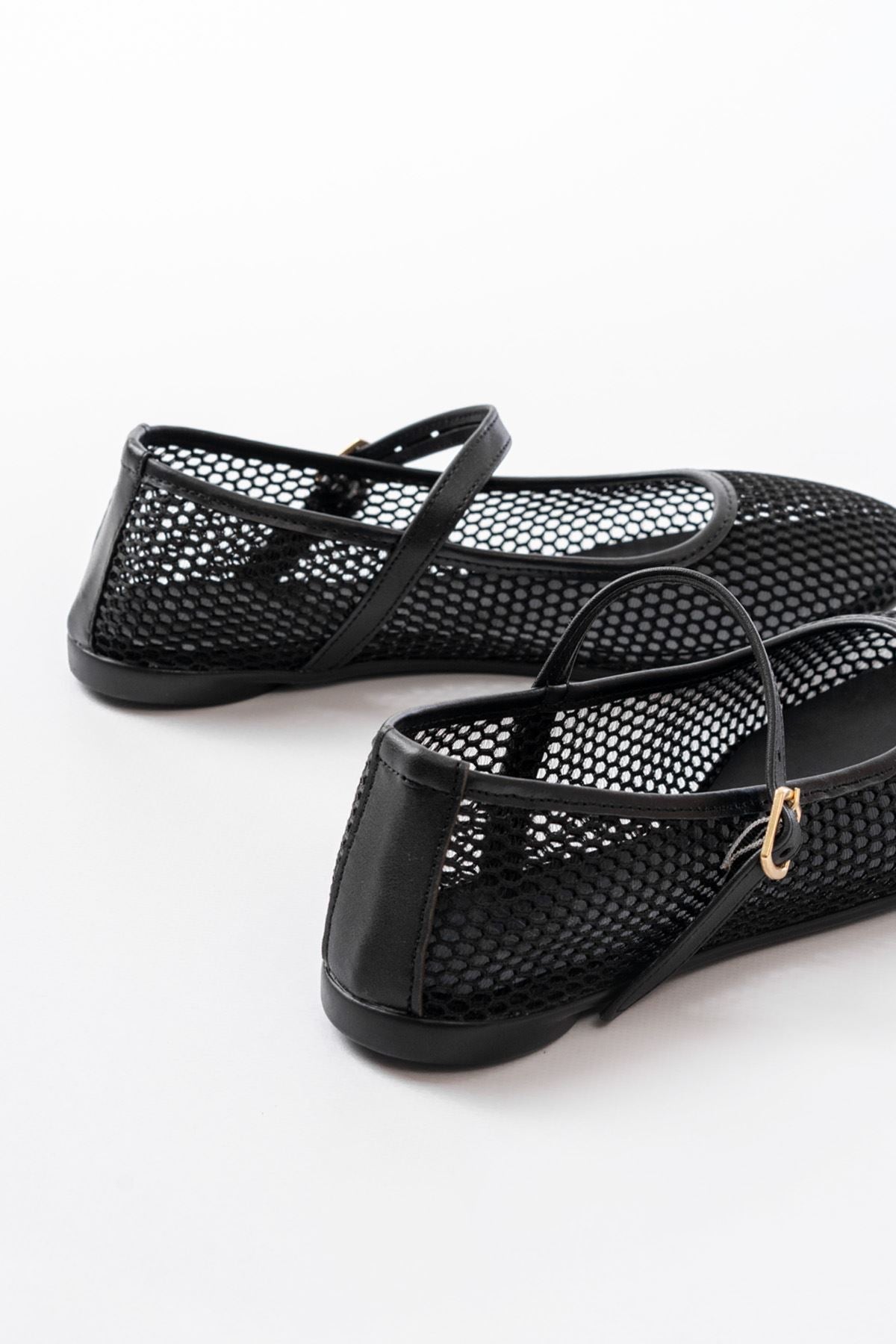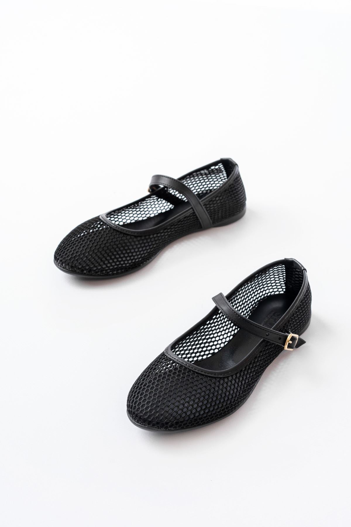 Ayakkabı Aşkı 6325 Siyah Fileli Baret Toka Detaylı Günlük Kadın Babet