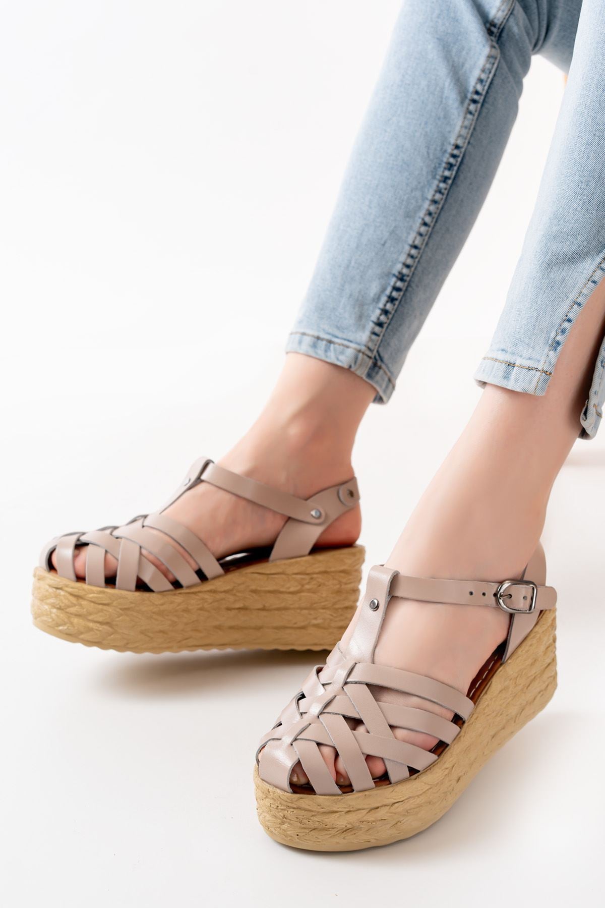 Ayakkabı Aşkı Bej Ortopedik Hakiki Deri Dolgu Kadın Sandalet