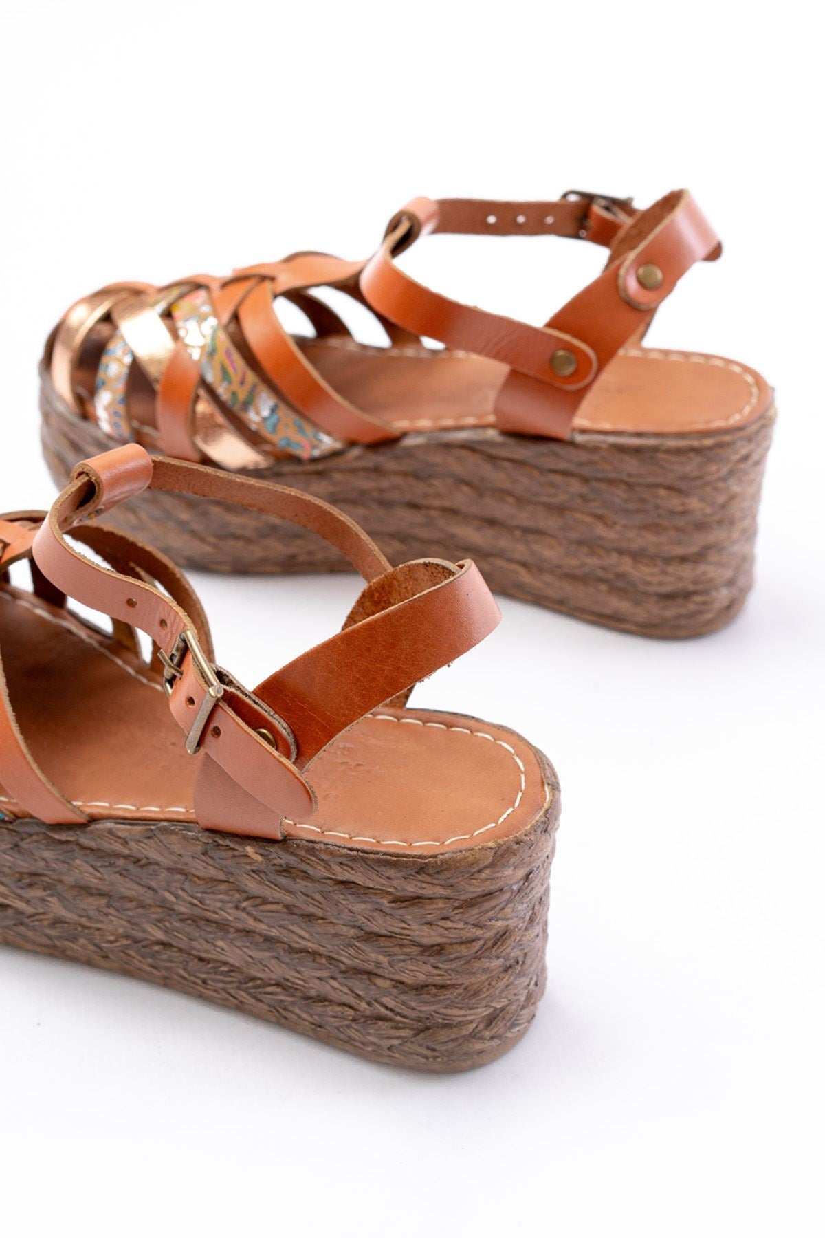 Ayakkabı Aşkı Taba Garni Ortopedik Hakiki Deri Dolgu Kadın Sandalet