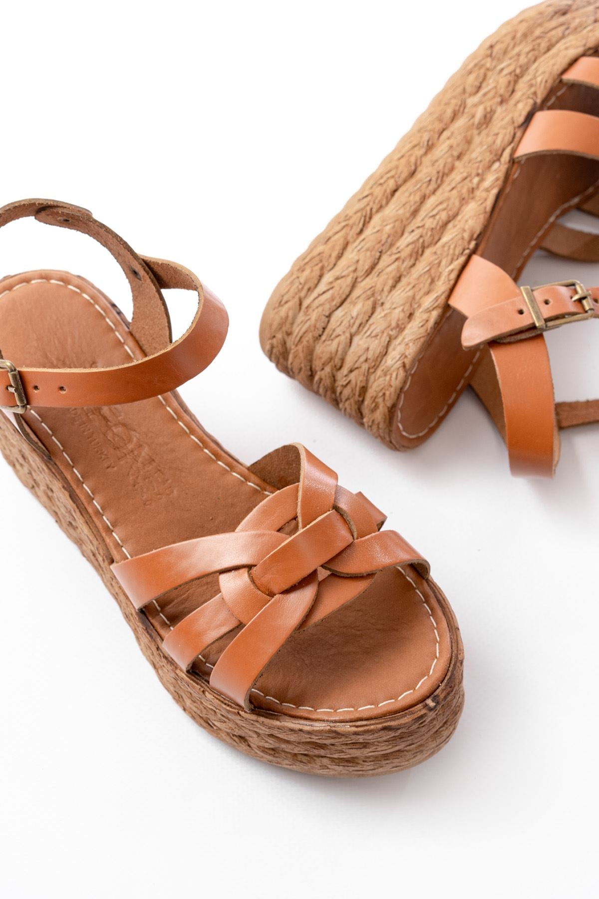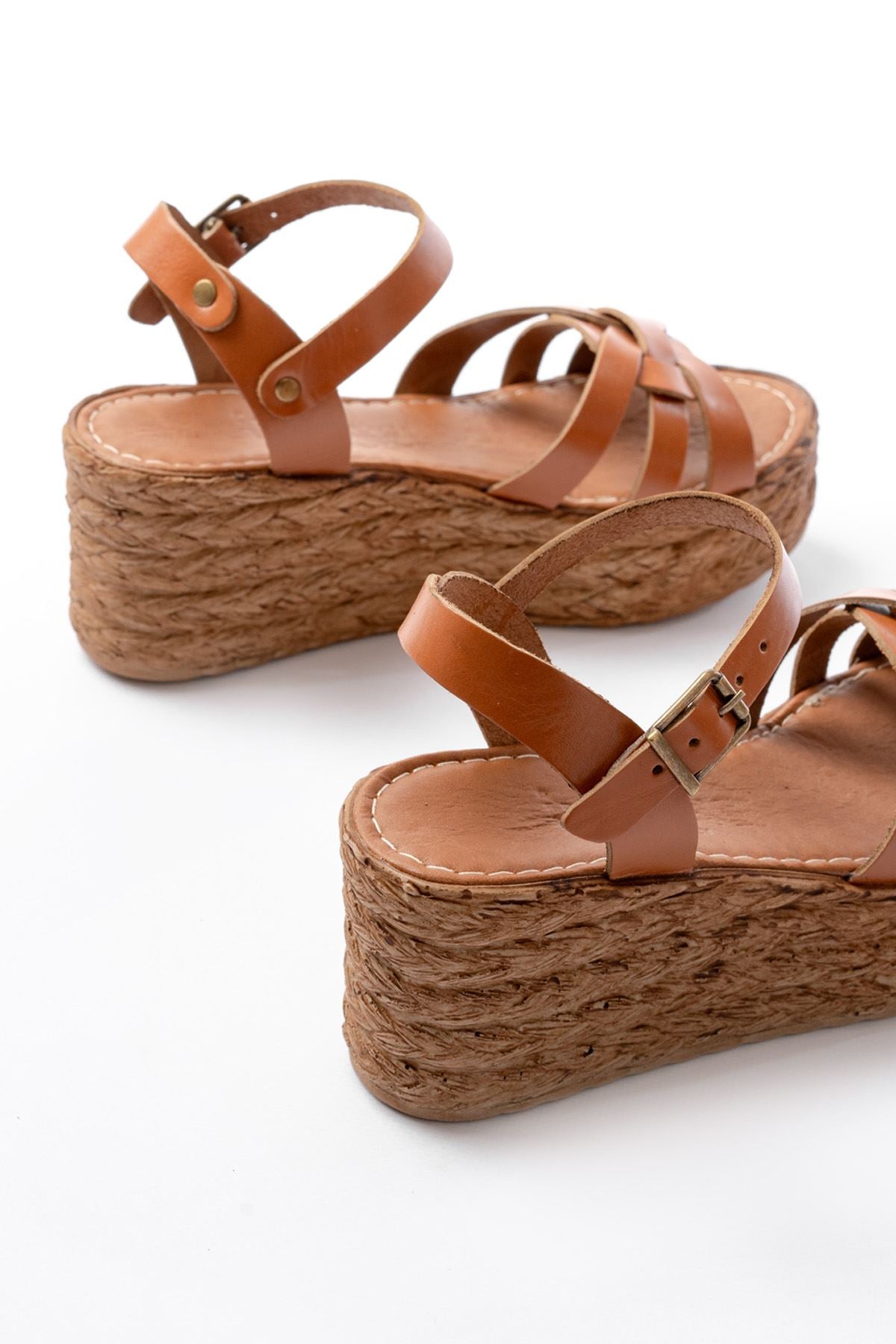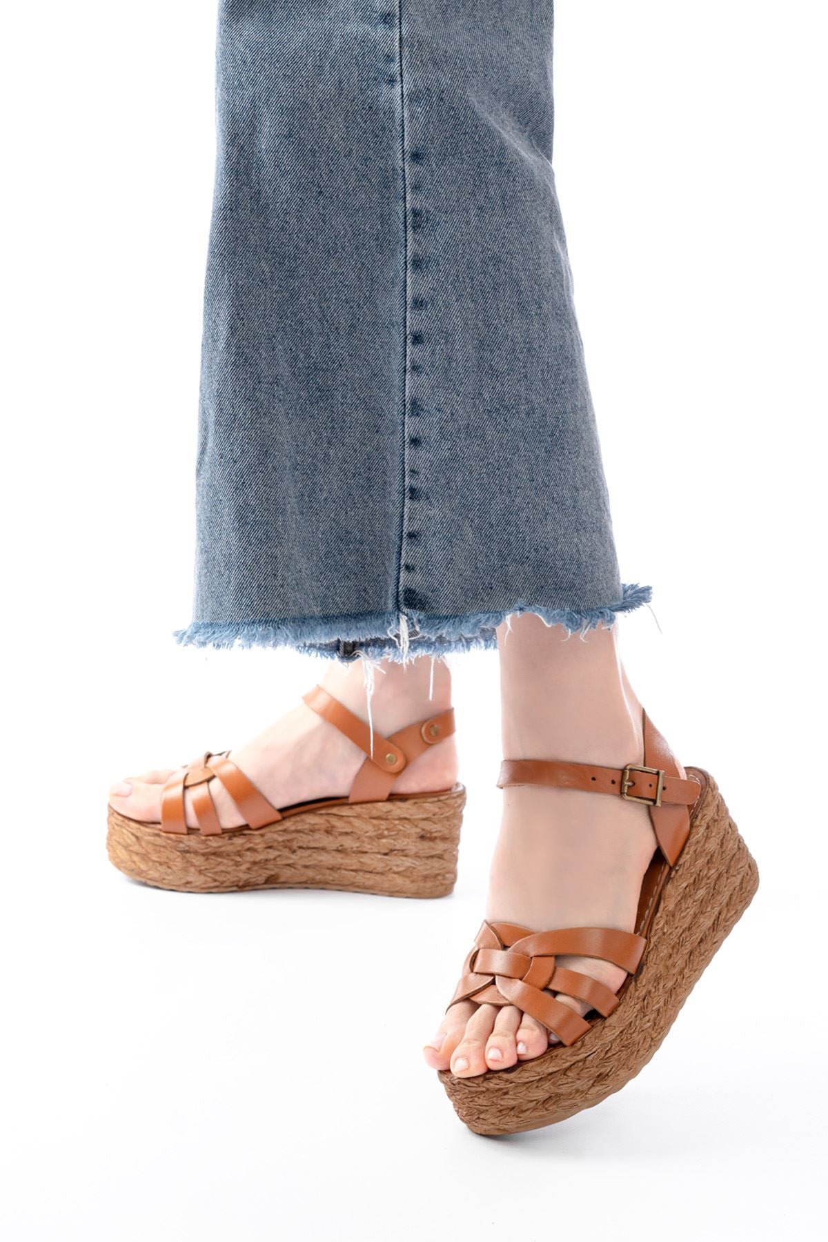 Ayakkabı Aşkı Taba Ortopedik Hakiki Deri Dolgu Kadın Sandalet