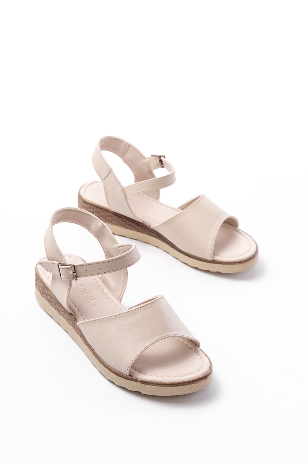 Ayakkabı Aşkı Bej Ortopedik Taban Tokalı Kadın Sandalet