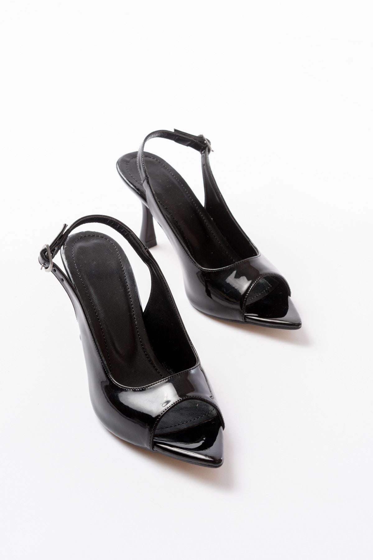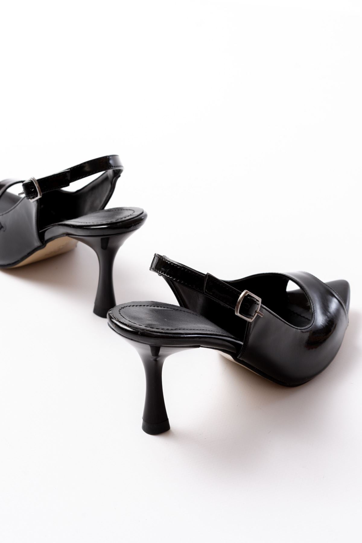 Ayakkabı Aşkı 717 Siyah Rugan Sivri Burunlu Topuklu Kadın Sandalet