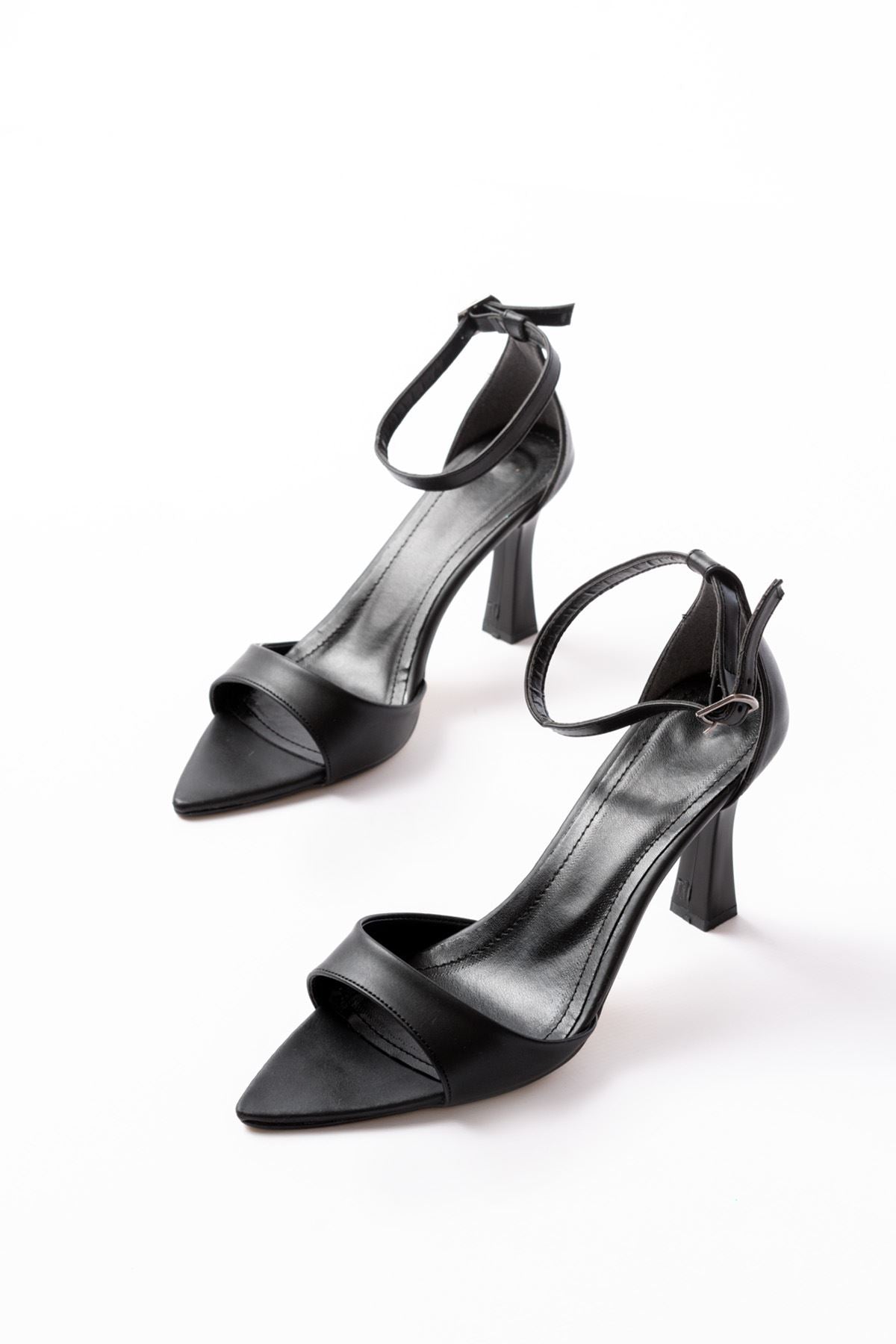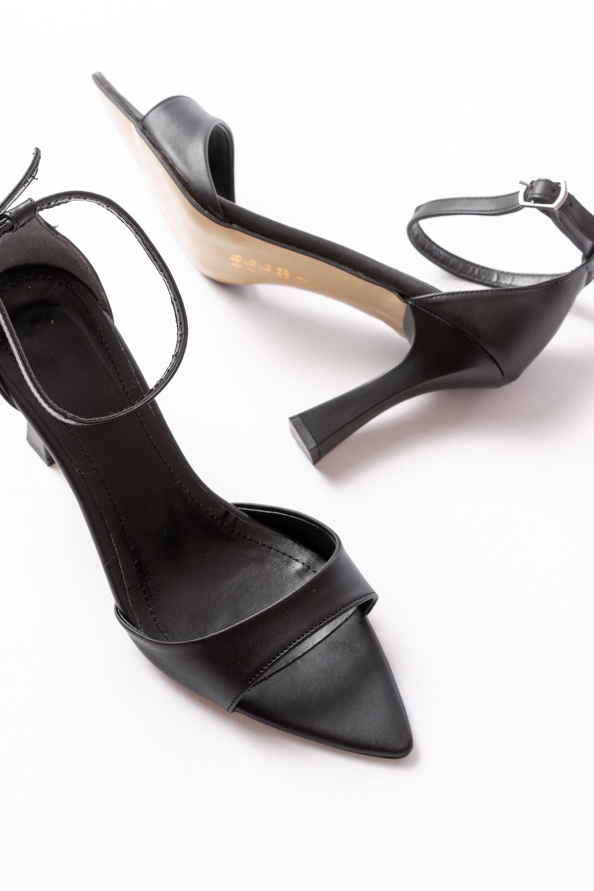 Ayakkabı Aşkı 718 Siyah Cilt Sivri Burunlu Topuklu Bilekten Bağlamalı Kadın Ayakkabı