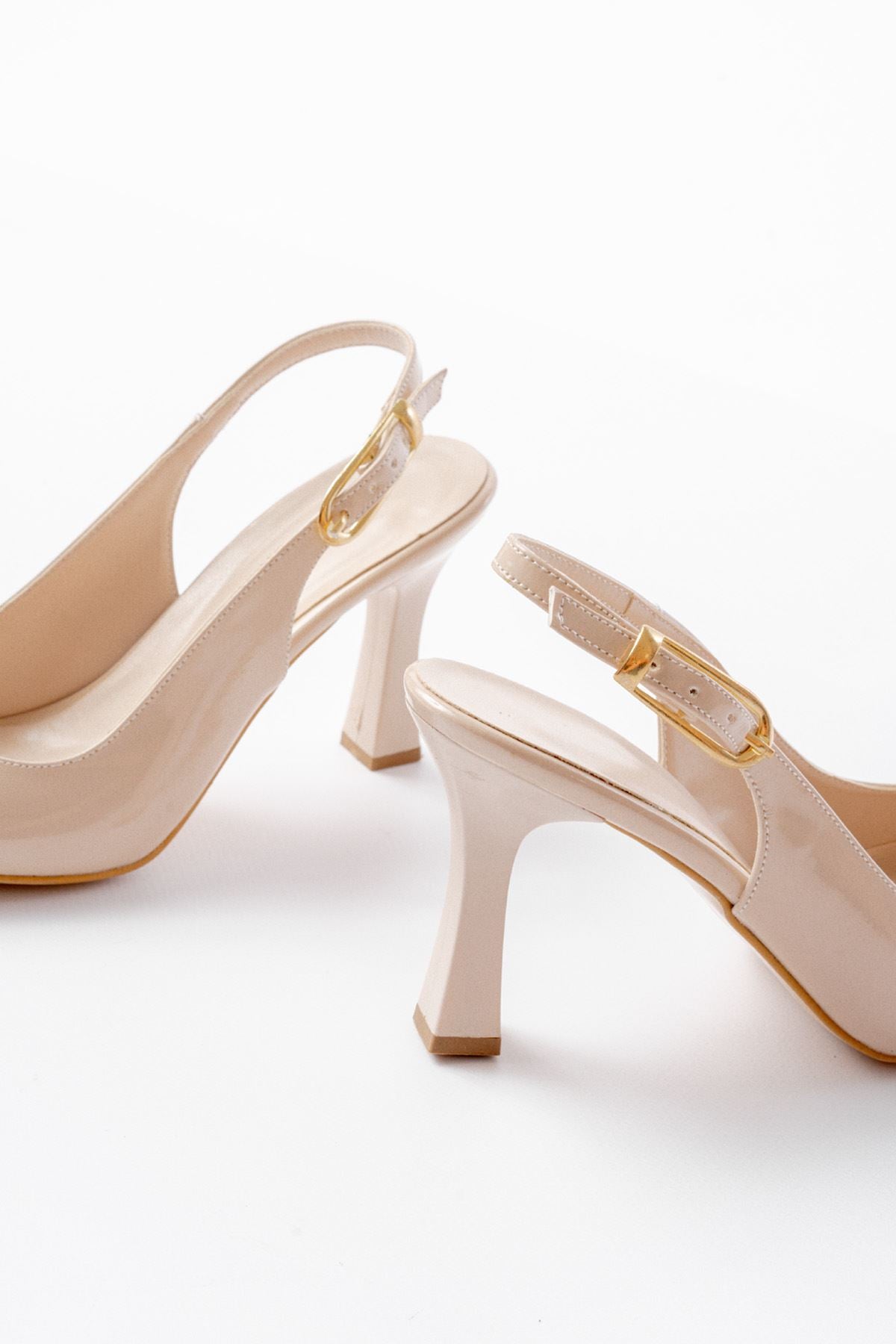 Ayakkabı Aşkı 719 Bej Rugan Sivri Burunlu Toka Detaylı Topuklu Kadın Ayakkabı