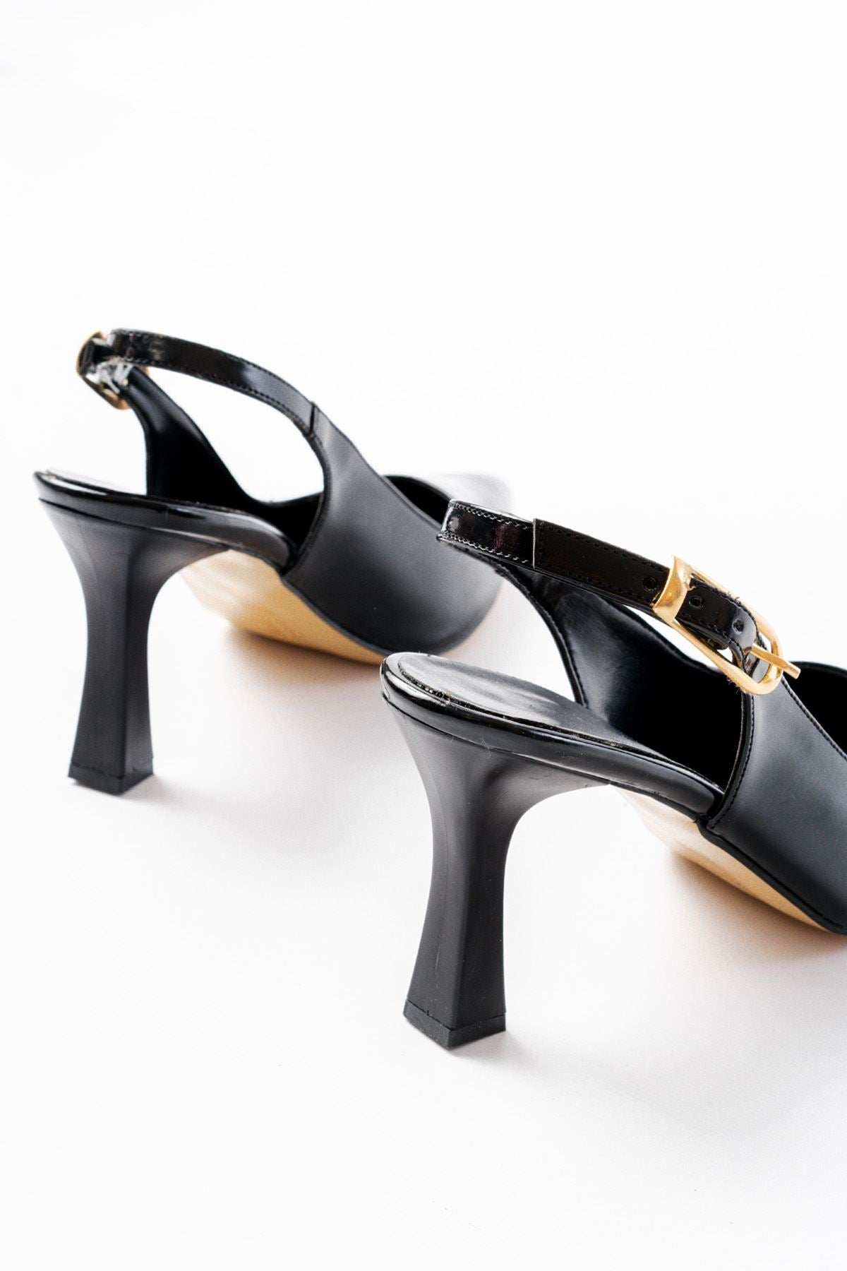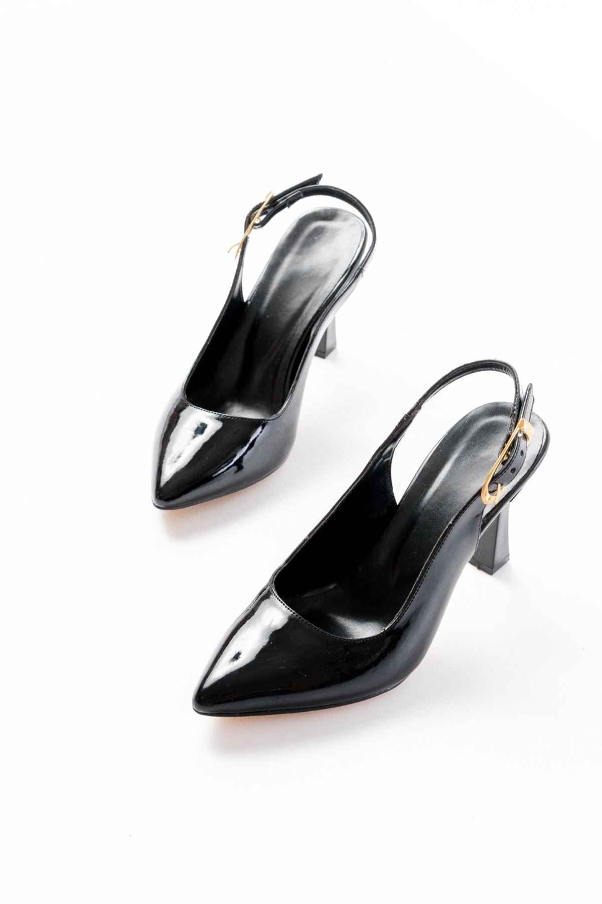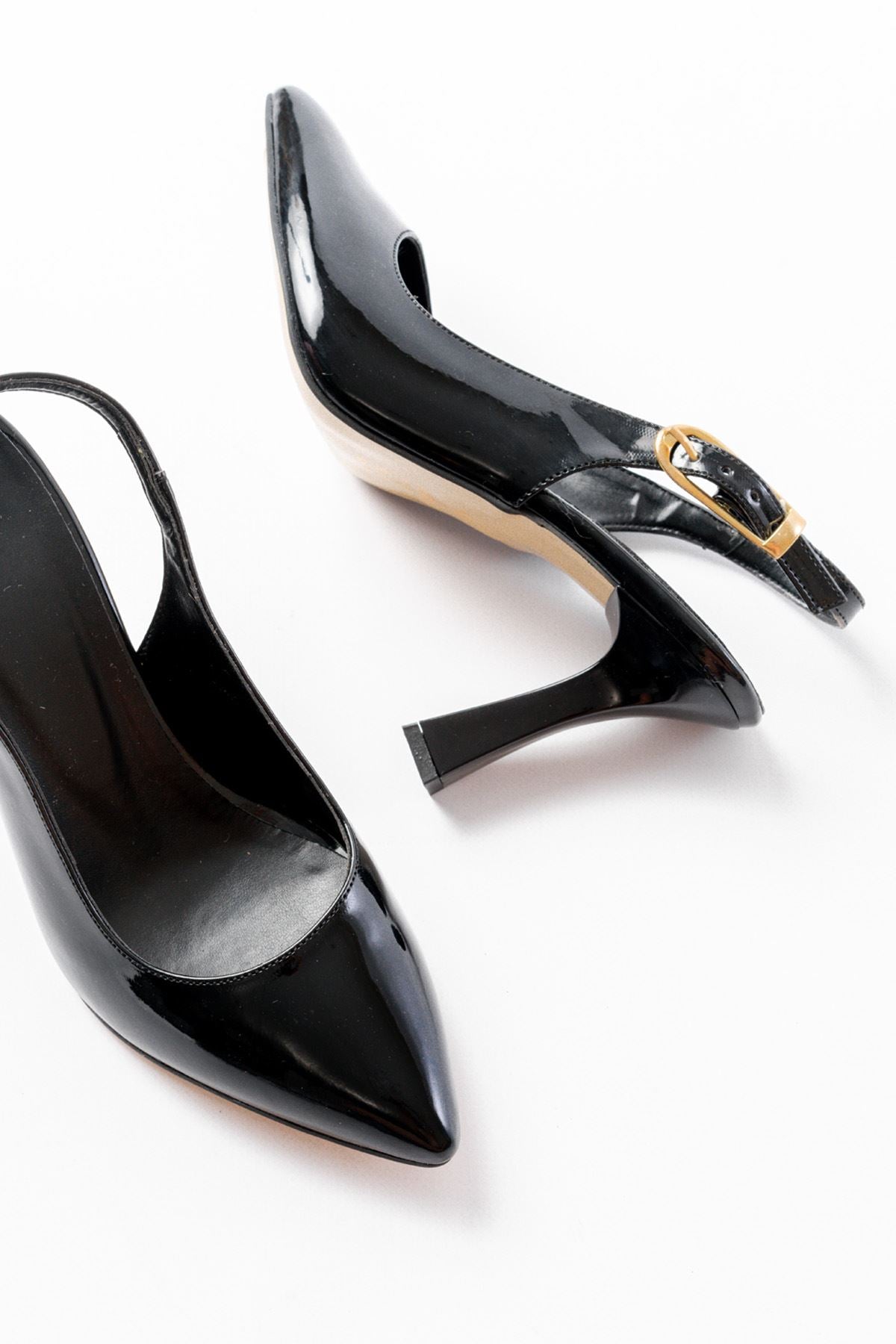 Ayakkabı Aşkı 719 Siyah Rugan Sivri Burunlu Toka Detaylı Topuklu Kadın Ayakkabı