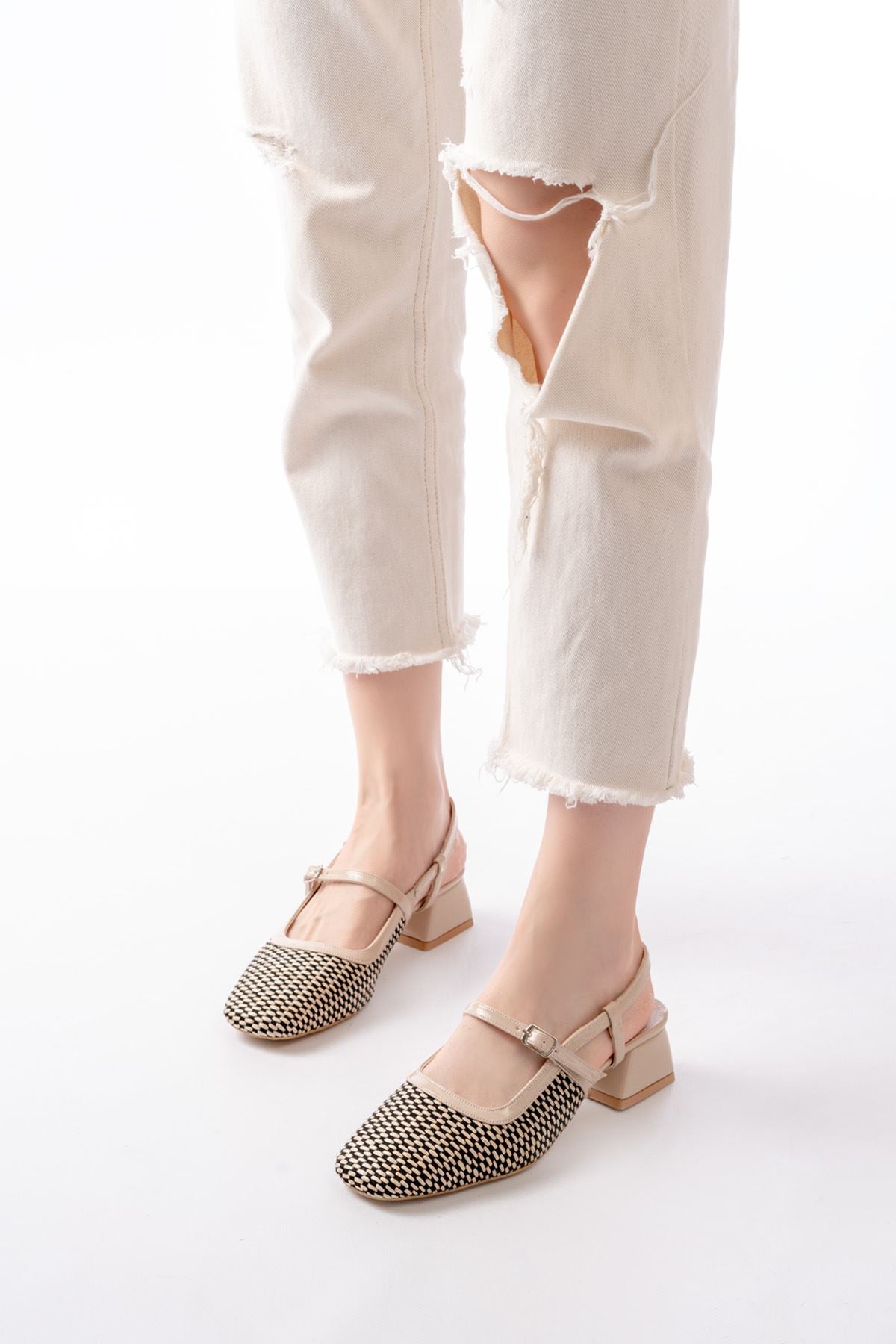 Ayakkabı Aşkı 72 Bej Desenli Arkası Açık Günlük Kadın Sandalet