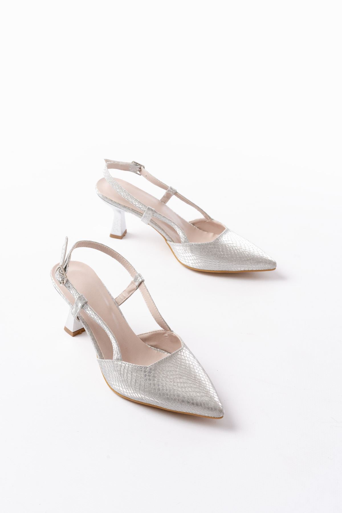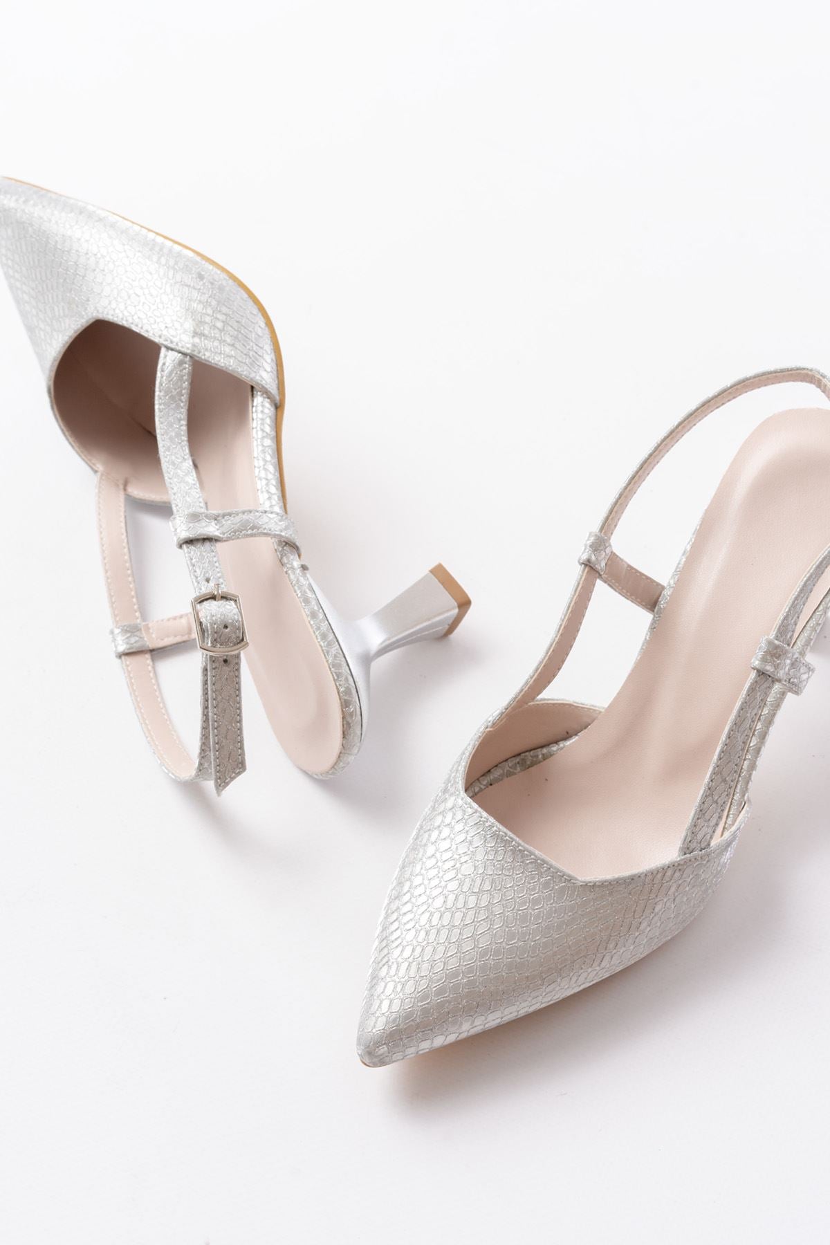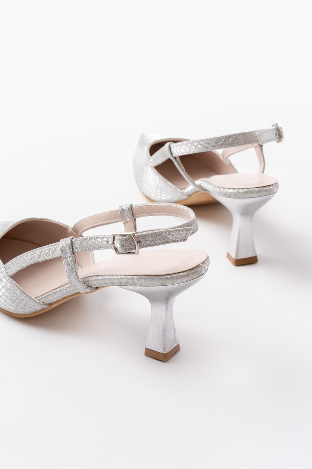 Ayakkabı Aşkı 725 Gümüş Pul Desenli Sivri Burunlu Topuklu Kadın Ayakkabı