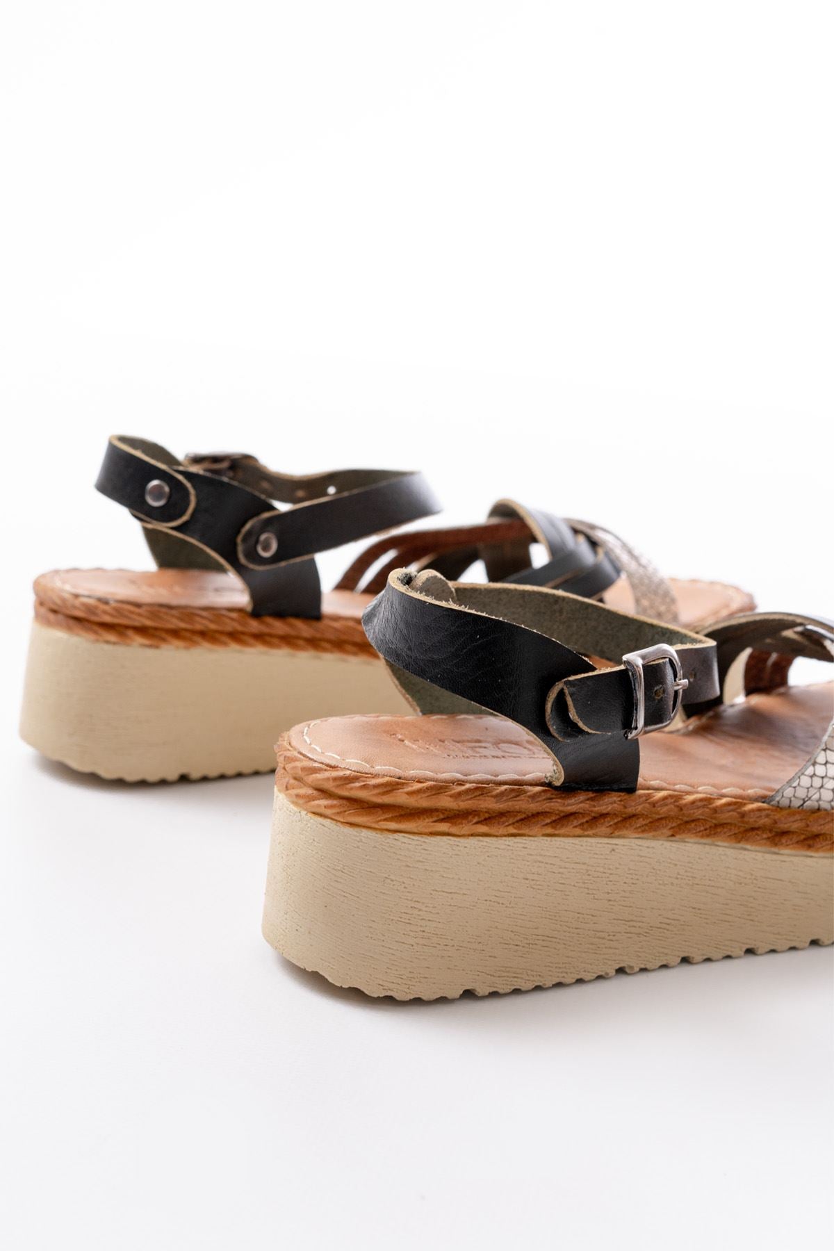 Ayakkabı Aşkı Siyah Ayna Hakiki Deri Ortopedik Taban Kadın Sandalet