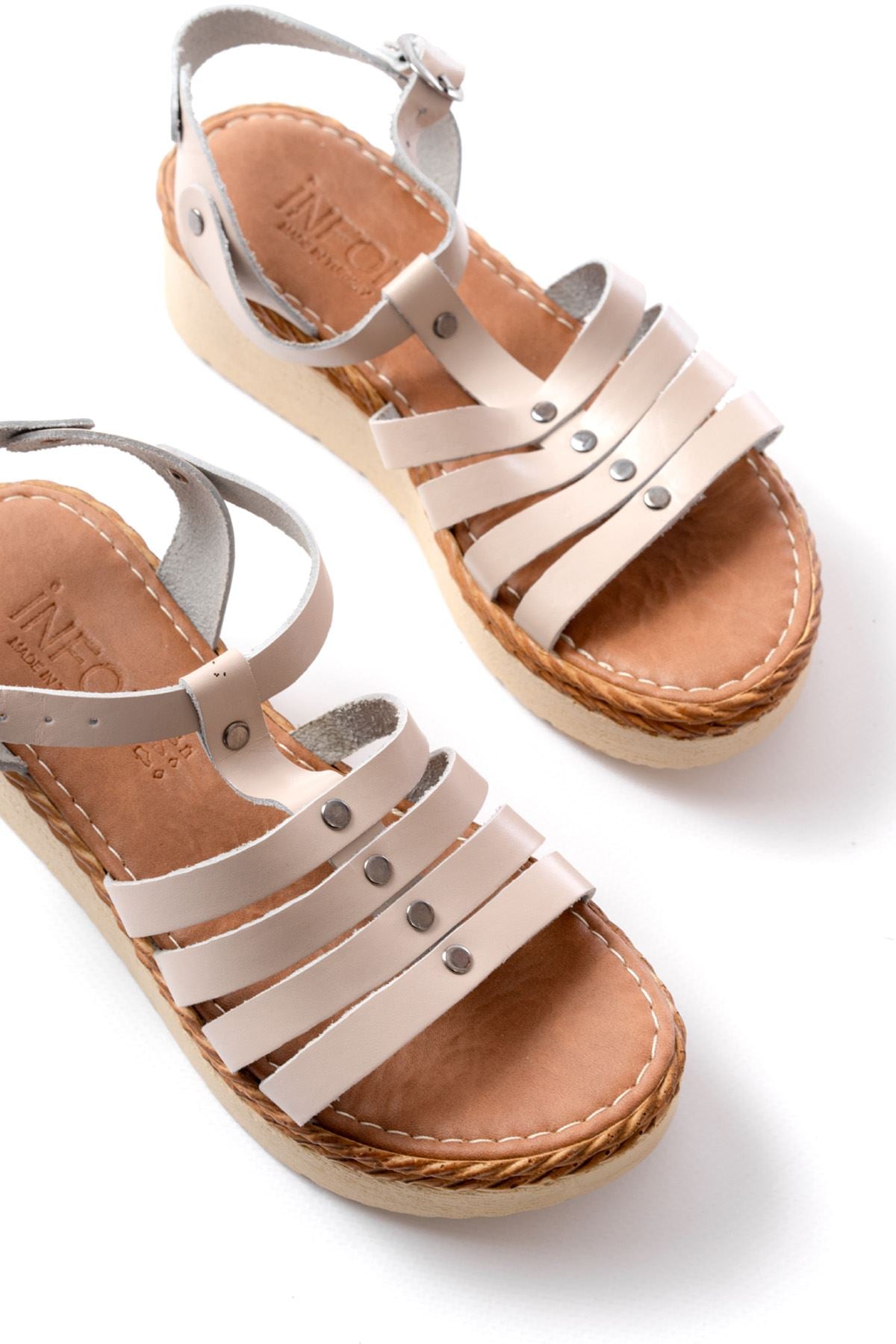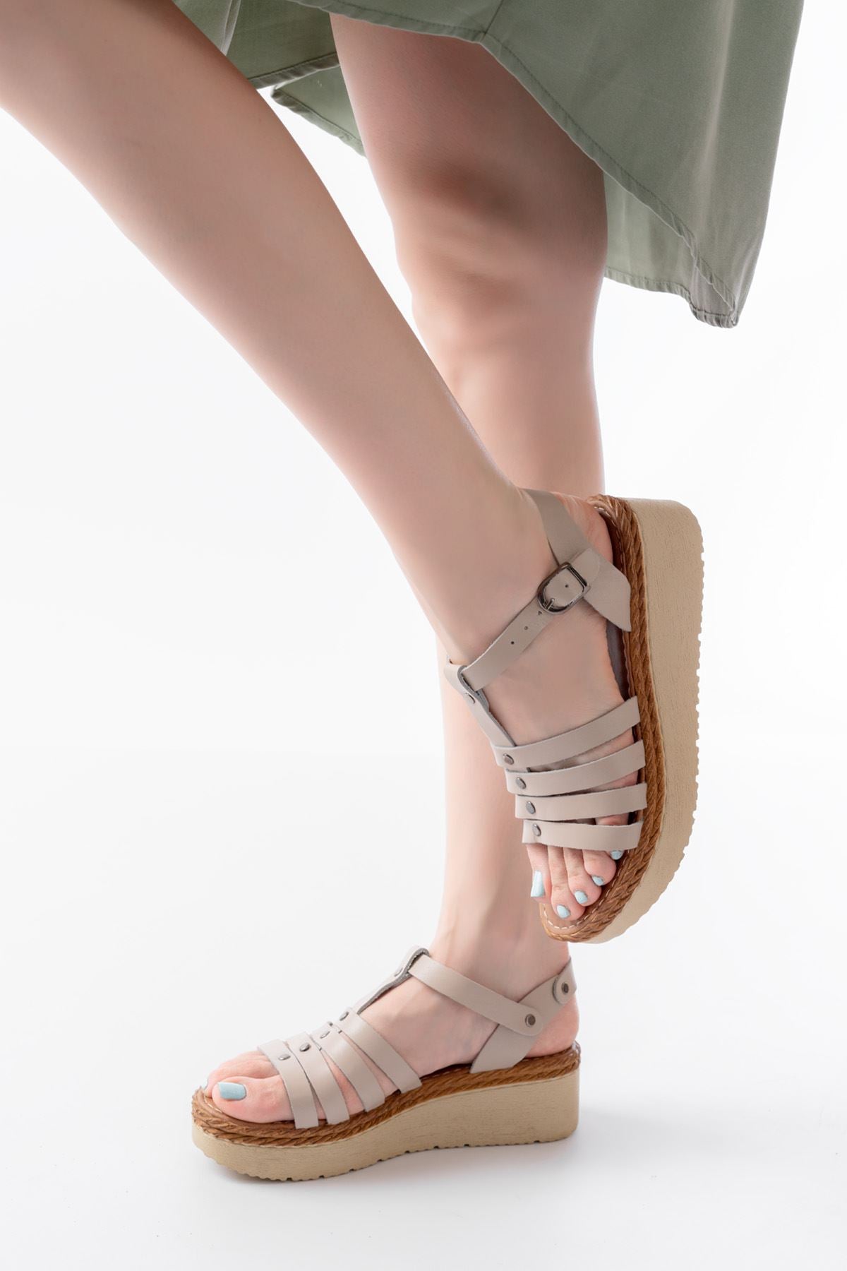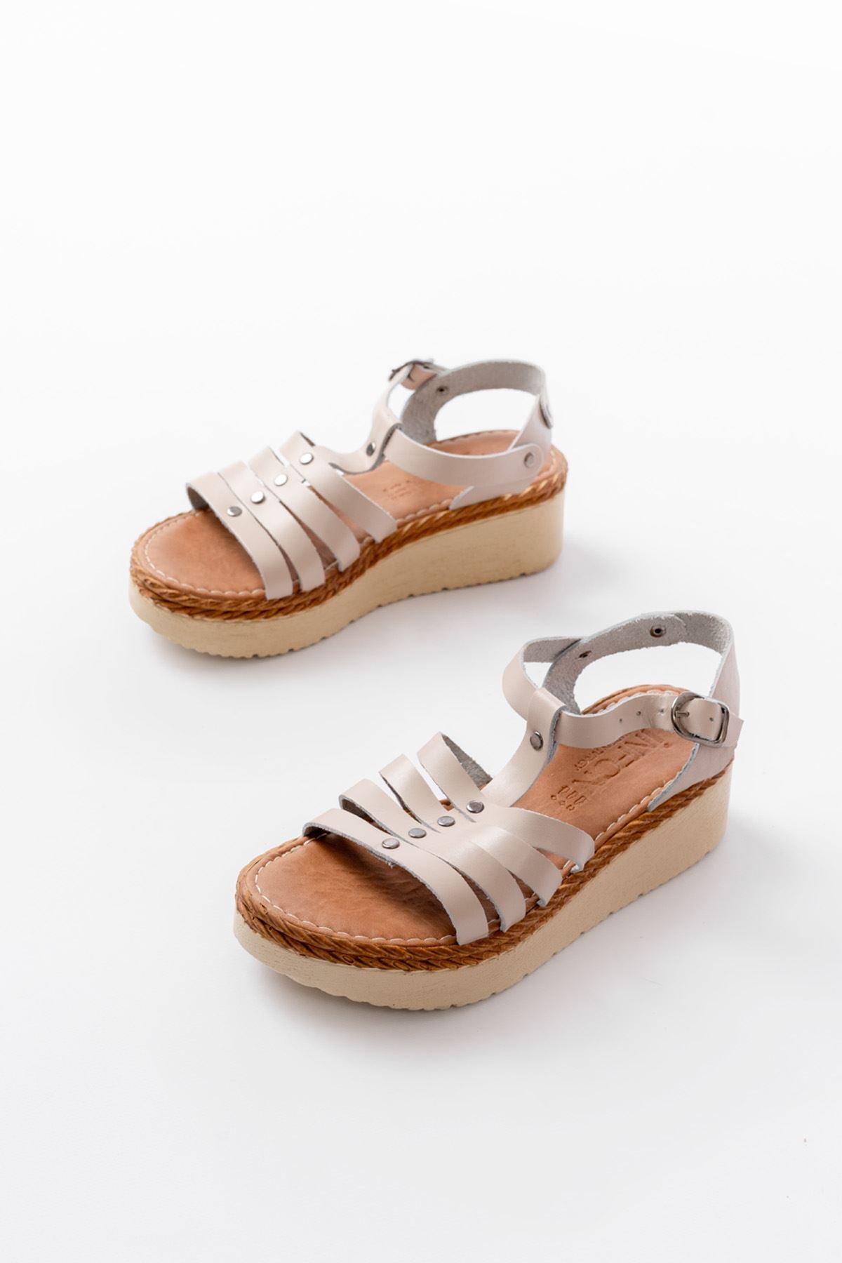 Ayakkabı Aşkı Bej Hakiki Deri Ortopedik Taban Kadın Sandalet