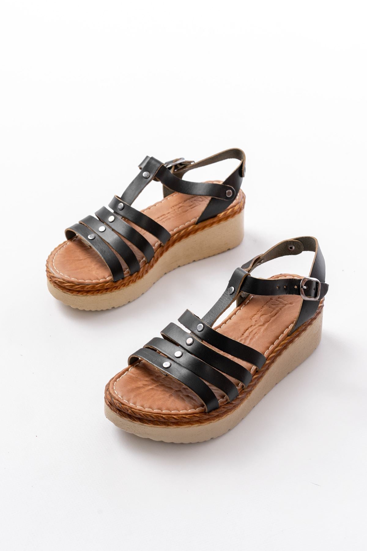 Ayakkabı Aşkı Siyah Hakiki Deri Ortopedik Taban Kadın Sandalet