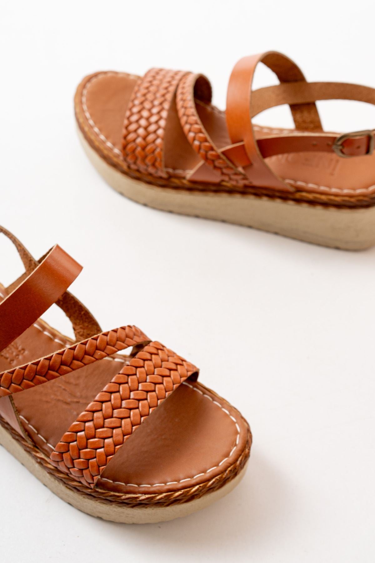 Ayakkabı Aşkı Taba Ortopedik Hakiki Deri Dolgu Kadın Sandalet