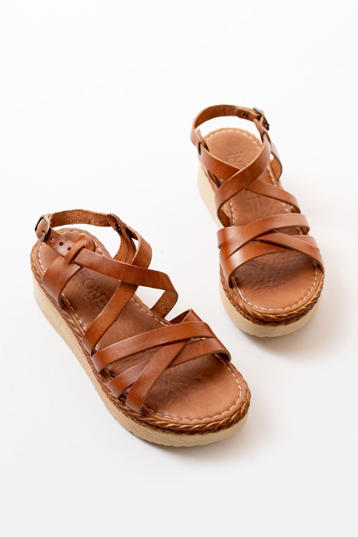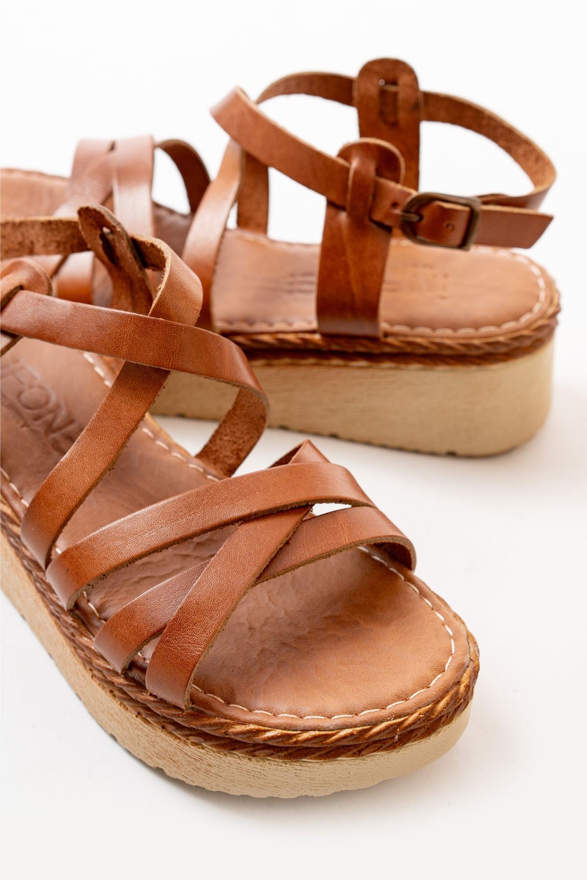 Ayakkabı Aşkı Taba Ortopedik Hakiki Deri Dolgu Kadın Sandalet