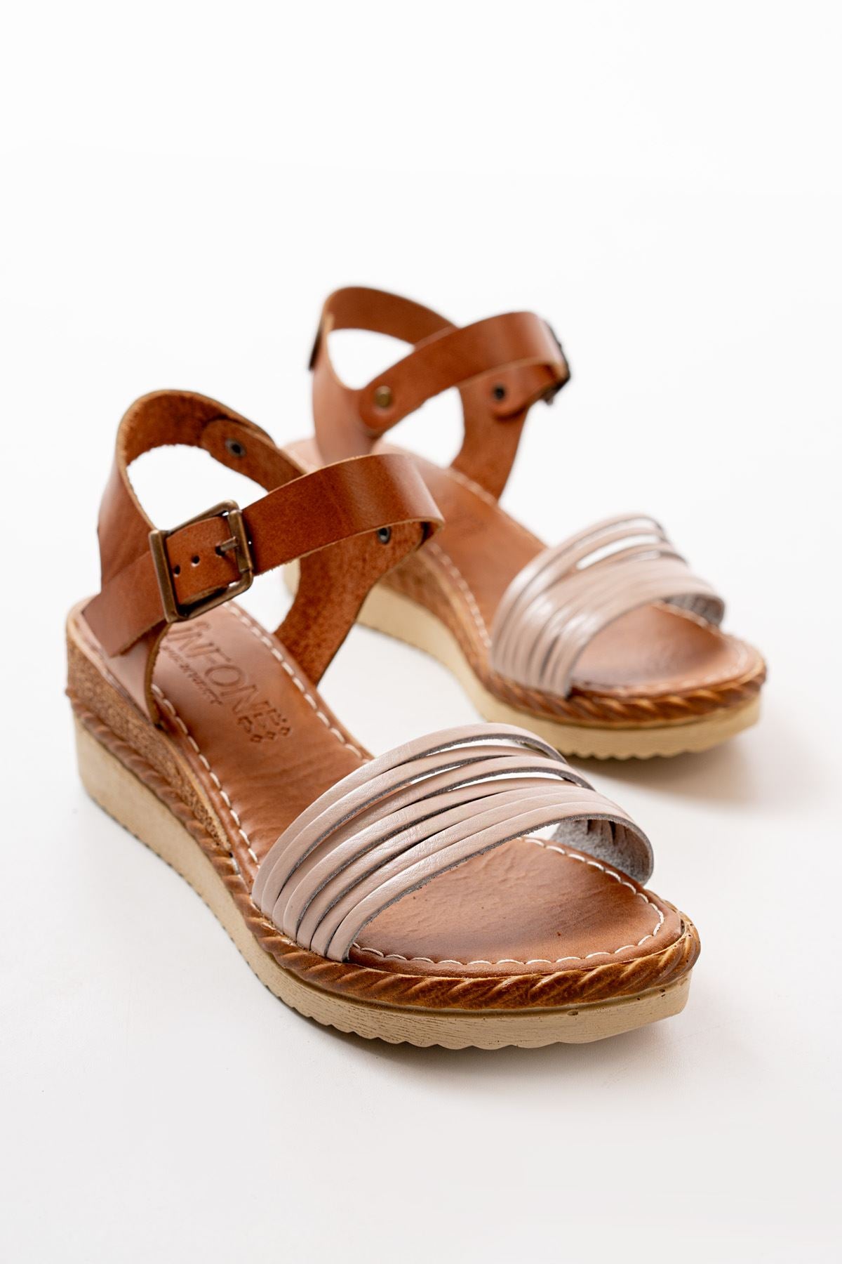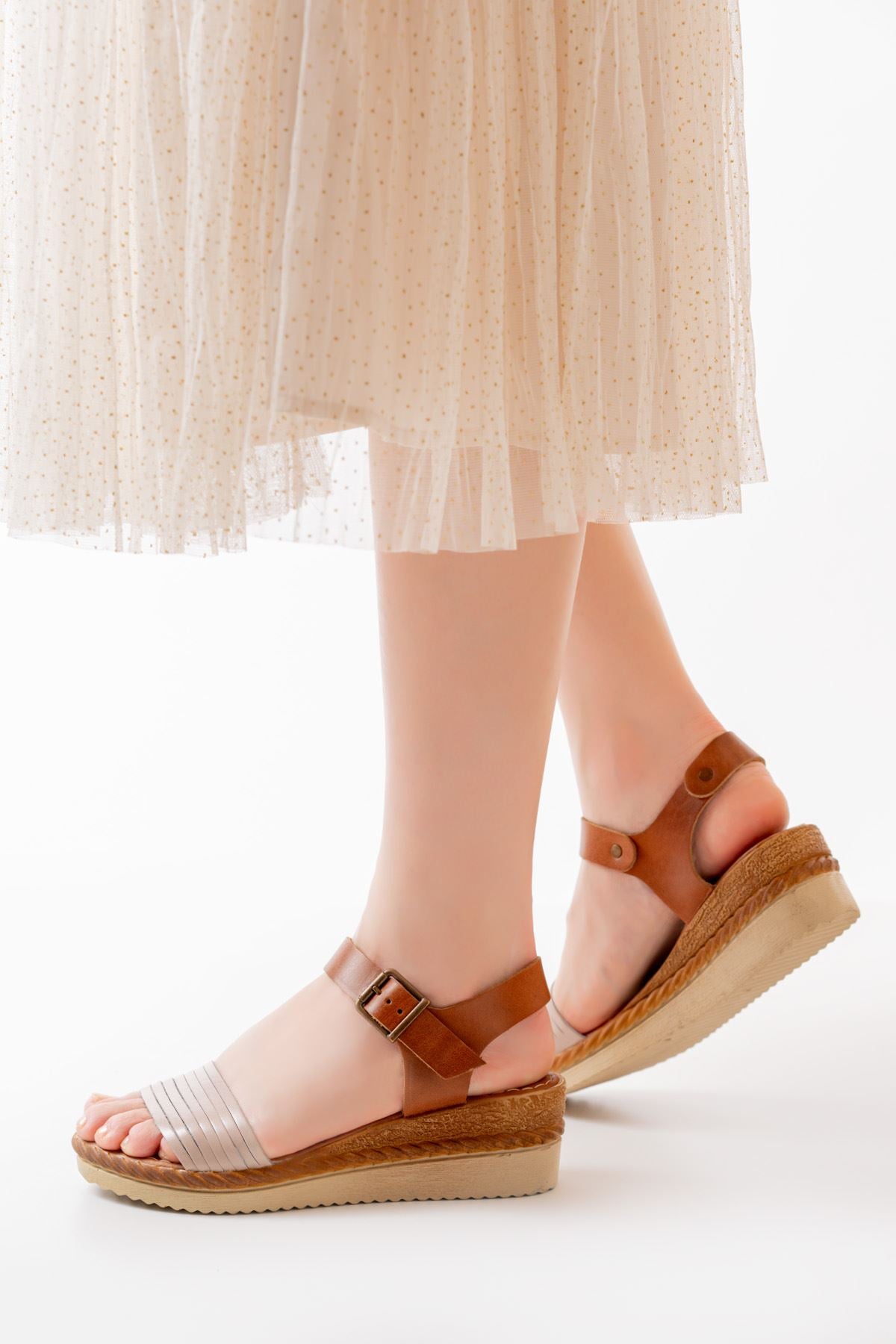 Ayakkabı Aşkı Bej Ortopedik Hakiki Deri Dolgu Kadın Sandalet