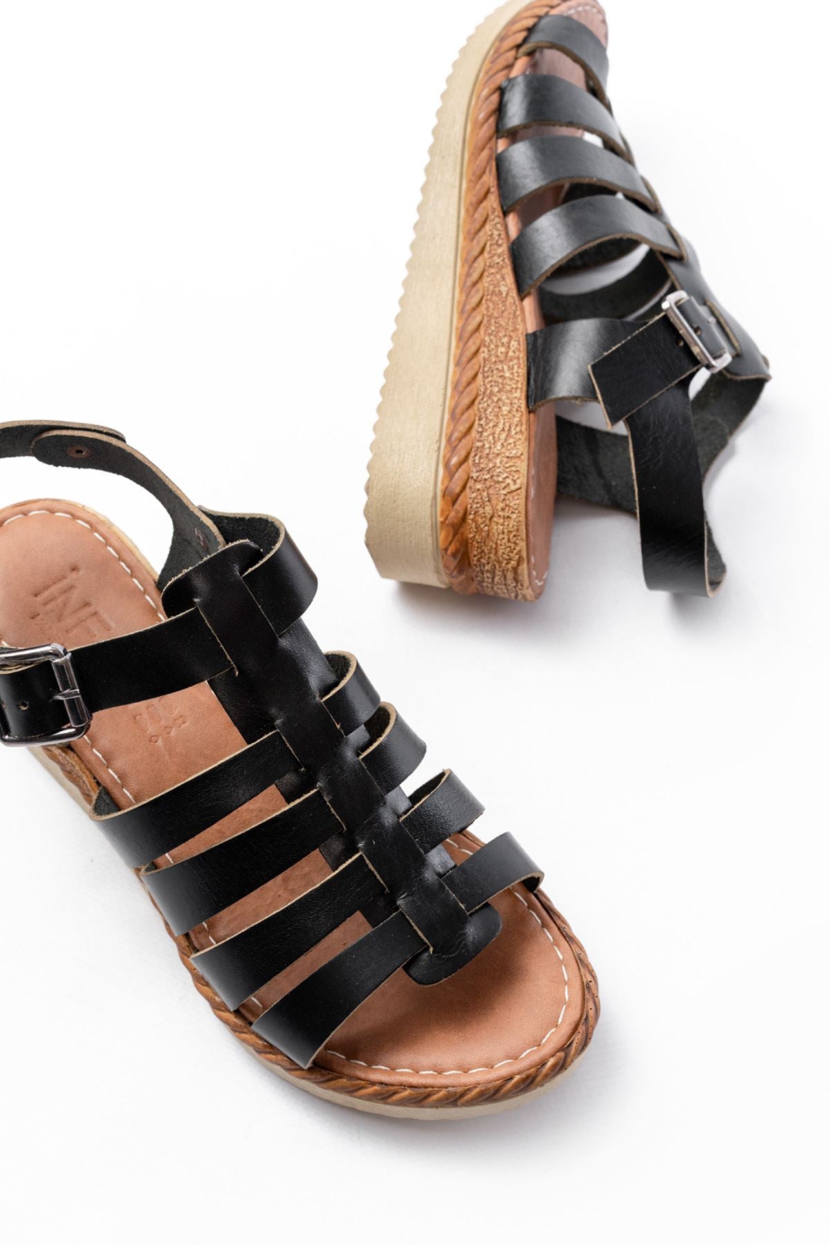 Ayakkabı Aşkı Siyah Hakiki Deri Dolgu Topuklu Günlük Kadın Sandalet