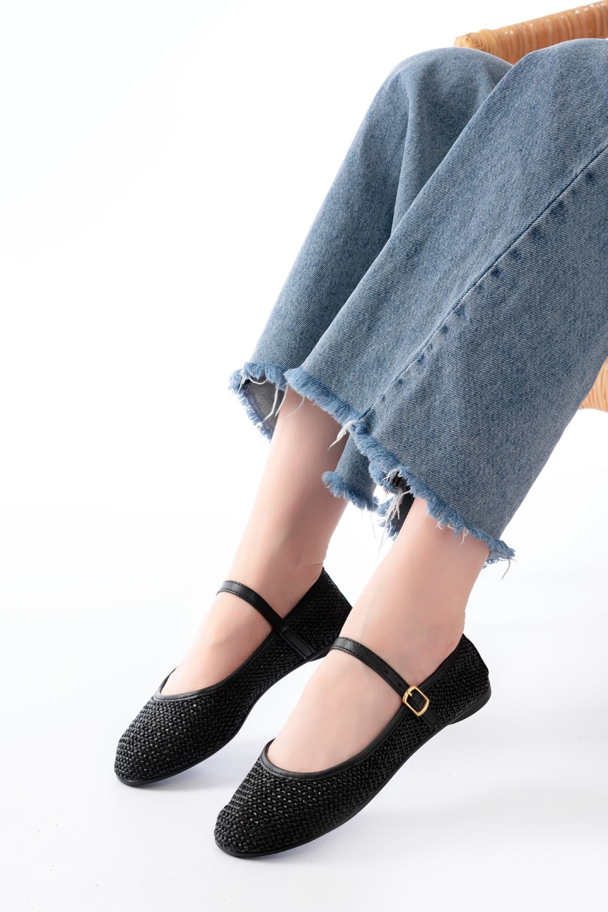 Ayakkabı Aşkı 7432 Siyah Fileli Toka Detaylı Günlük Kadın Babet