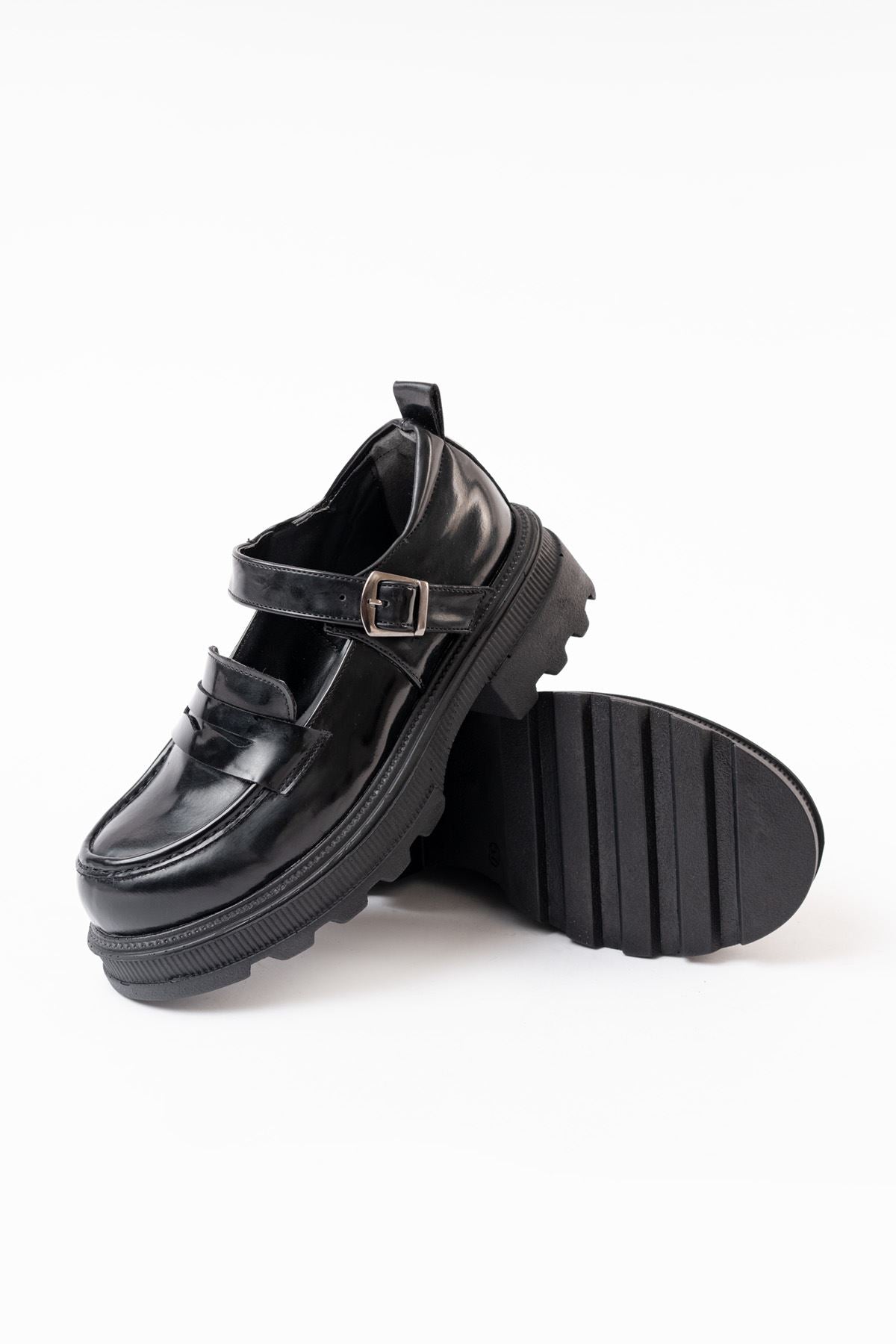 Ayakkabı Aşkı Siyah Rugan Günlük Yüksek Tabanlı Loafer Ayakkabı