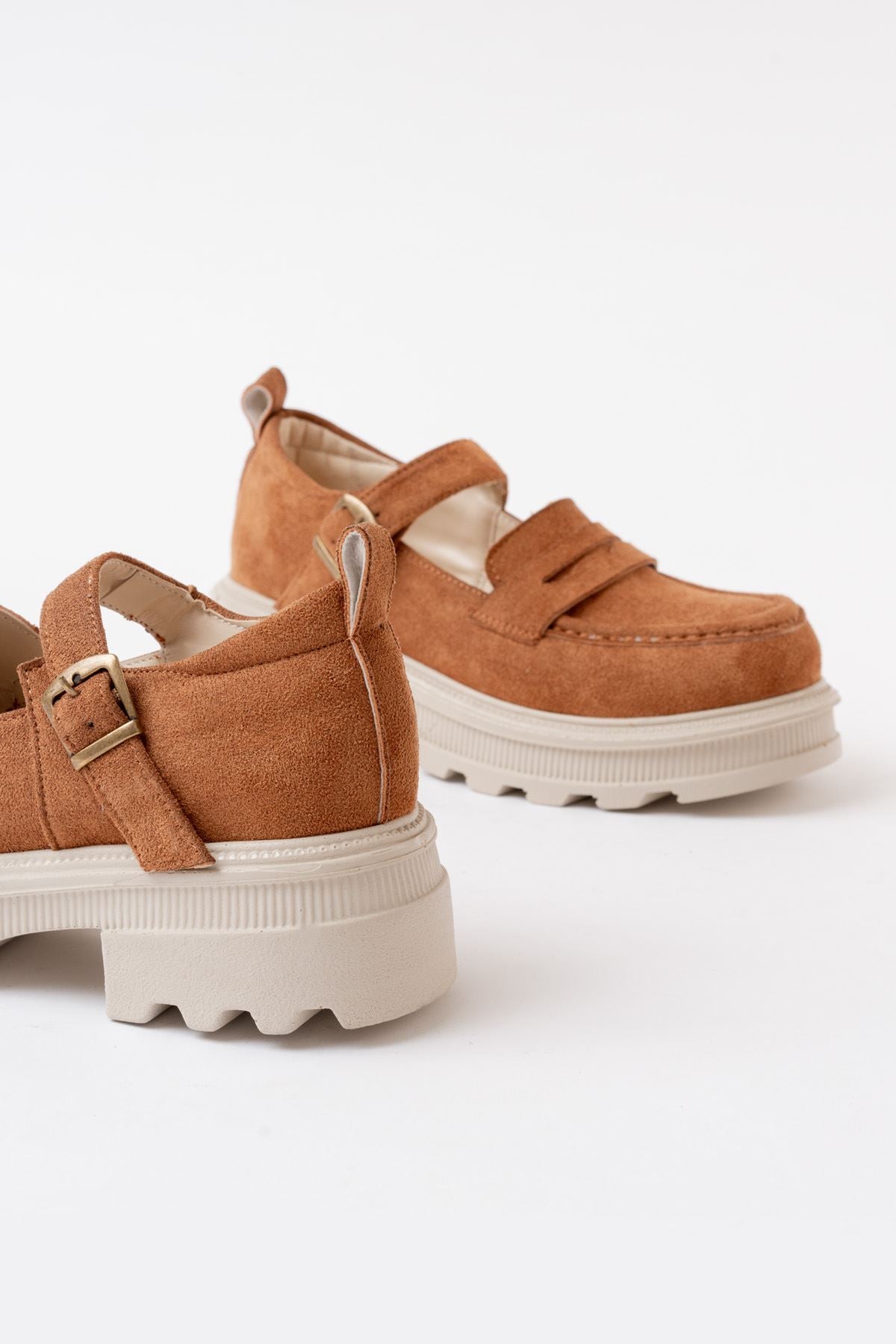 Ayakkabı Aşkı Taba Süet Kadın Günlük Yüksek Tabanlı Loafer Ayakkabı