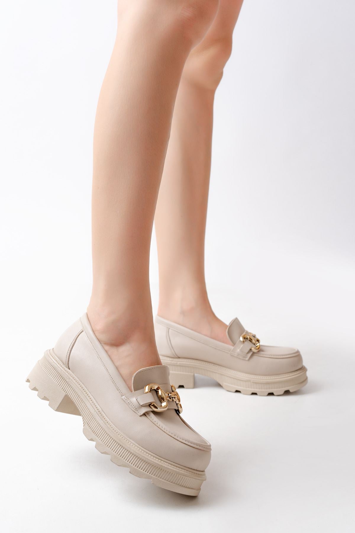 Ayakkabı Aşkı Bej Günlük Yüksek Tabanlı Loafer Ayakkabı