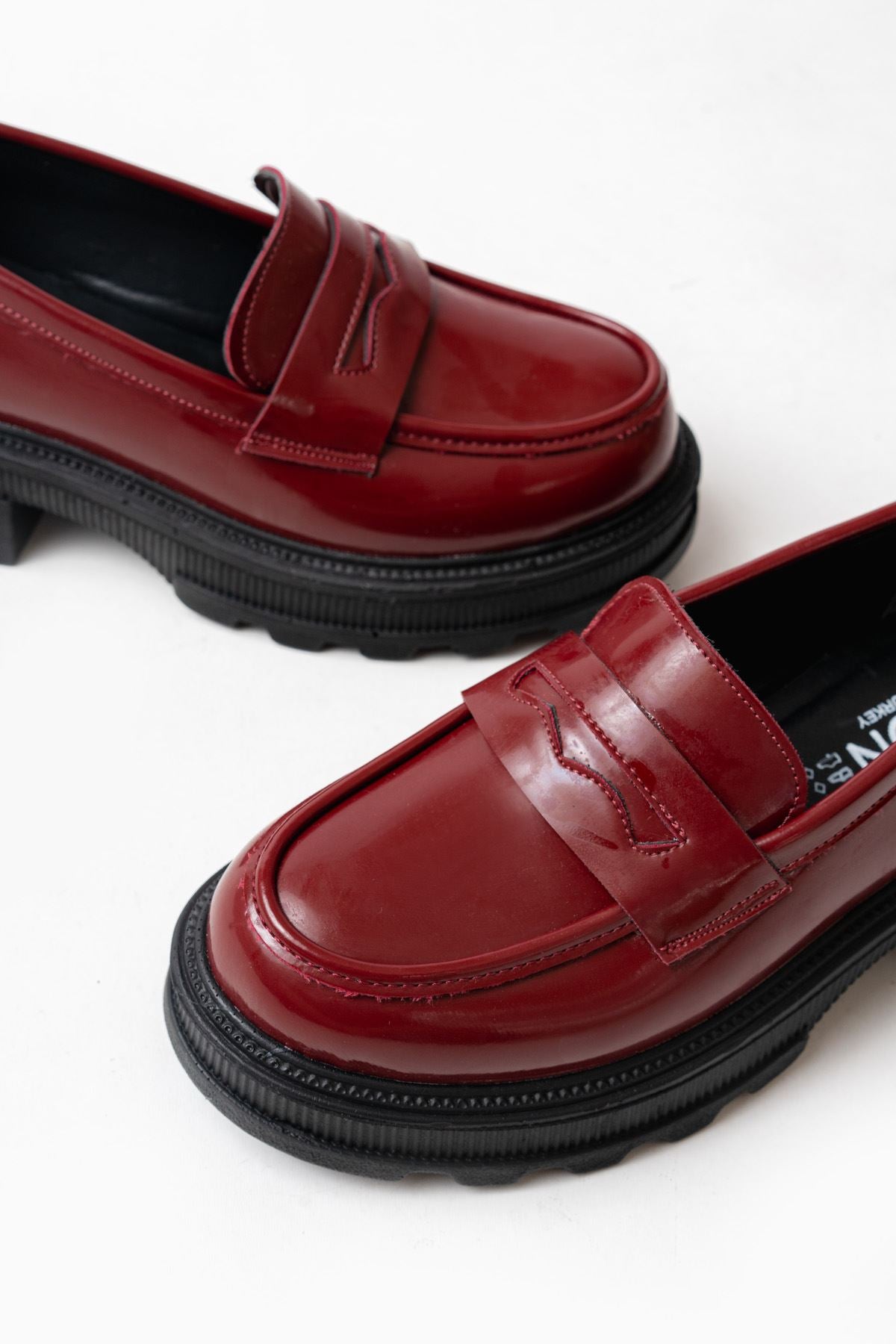 Ayakkabı Aşkı Bordo Rugan Günlük Yüksek Tabanlı Loafer Ayakkabı