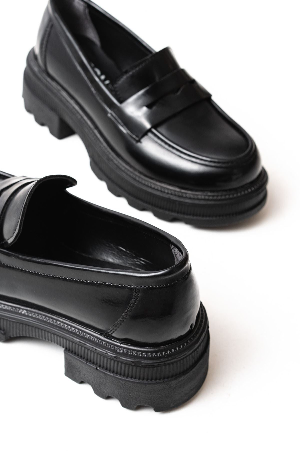 Ayakkabı Aşkı Siyah Rugan Günlük Yüksek Tabanlı Loafer Ayakkabı