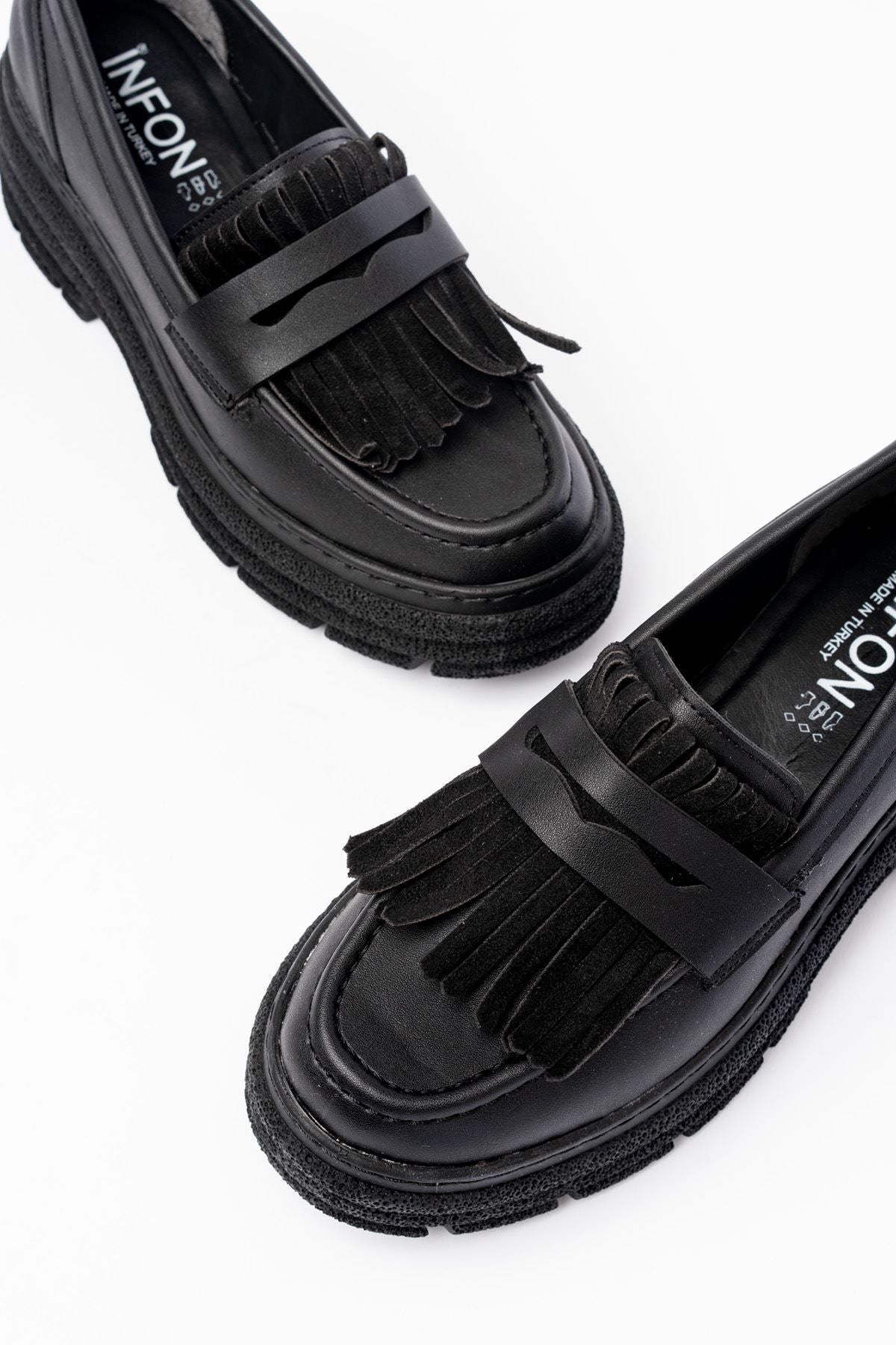 - Şıklık ve konforu bir arada sunan Ayakkabı Aşkı siyah loafer, günlük kombinlerinize zarif bir dokunuş katar.