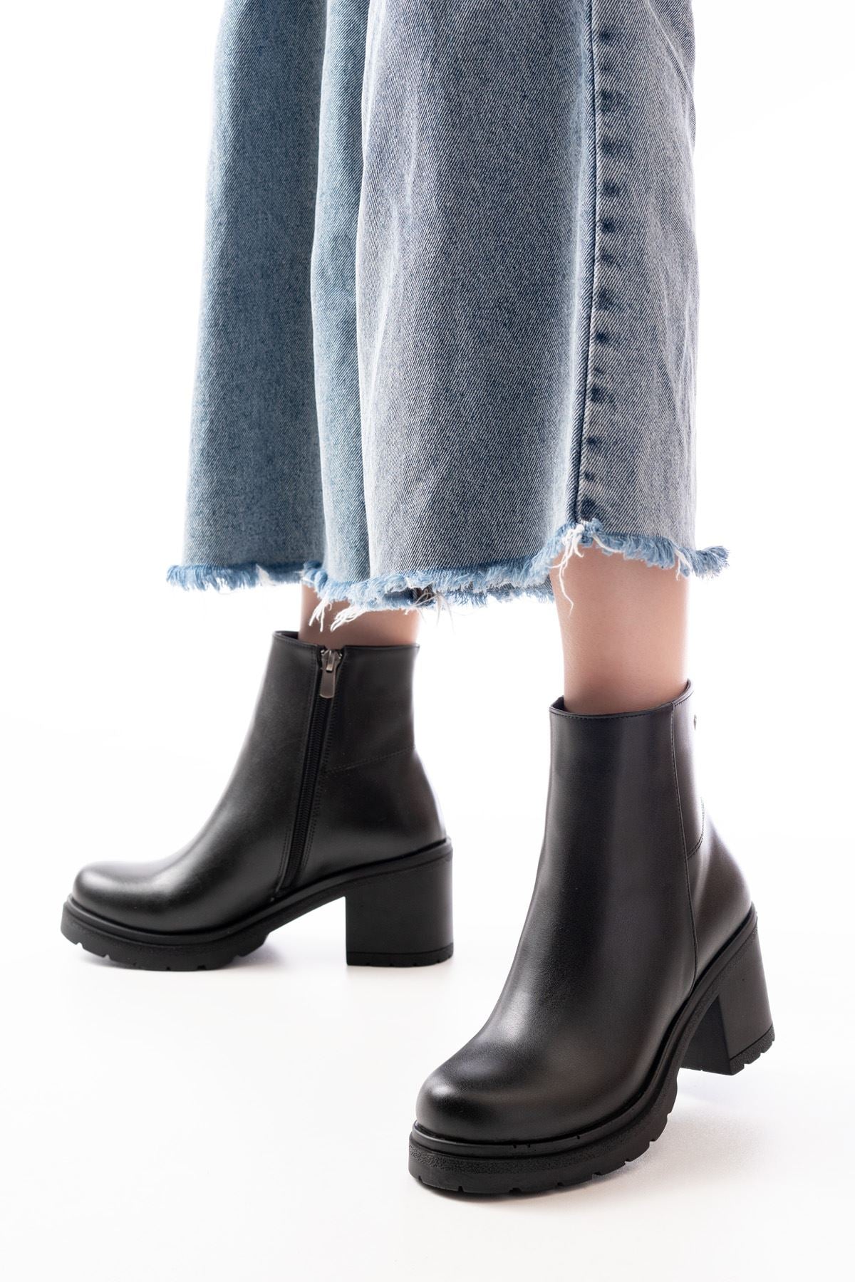 Ayakkabı Aşkı Siyah Fermuarlı Kalın Topuklu Günlük Kadın Bot