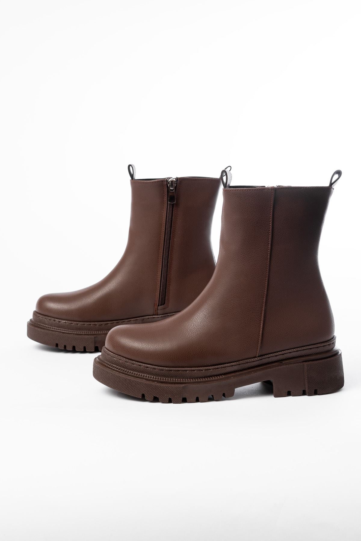 Ayakkabı Aşkı Kahverengi Luna Fermuarlı Günlük Kadın Bot