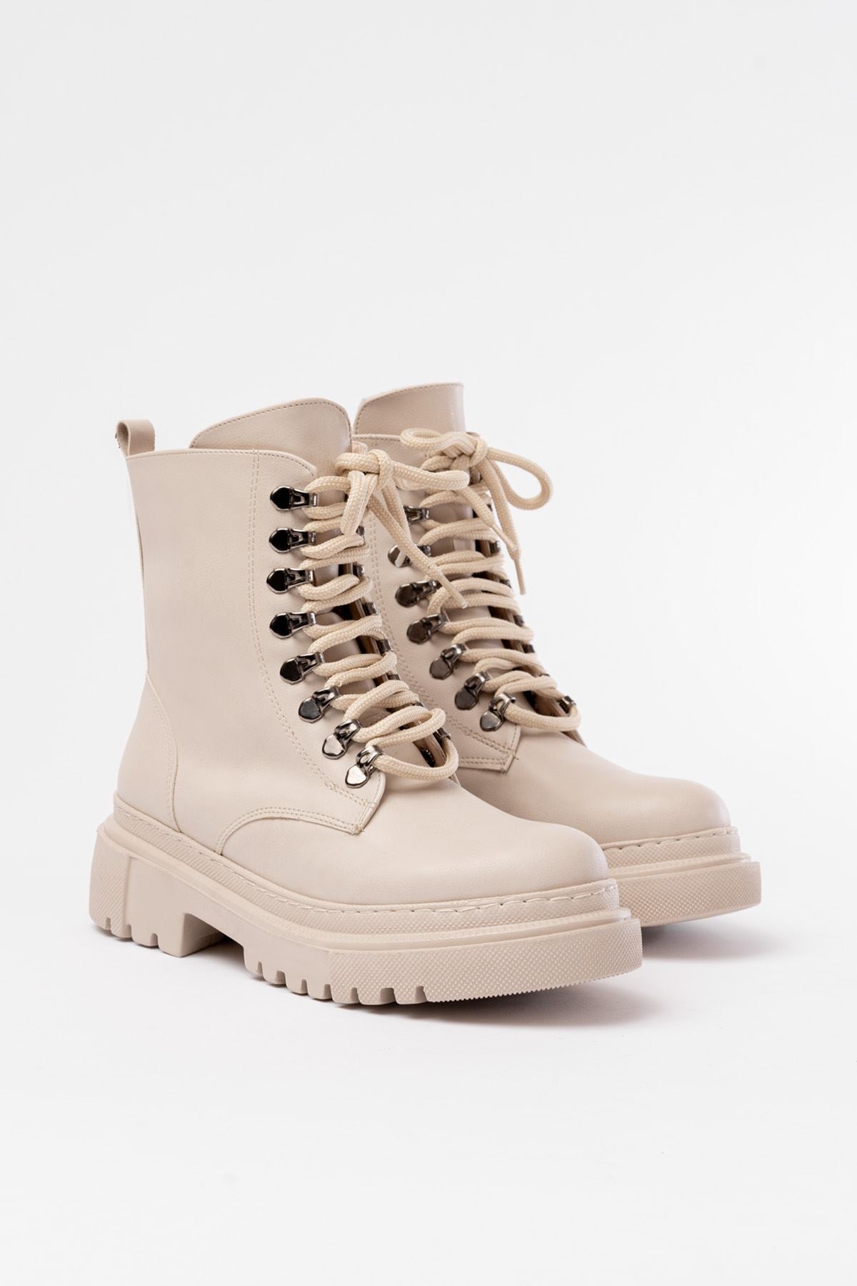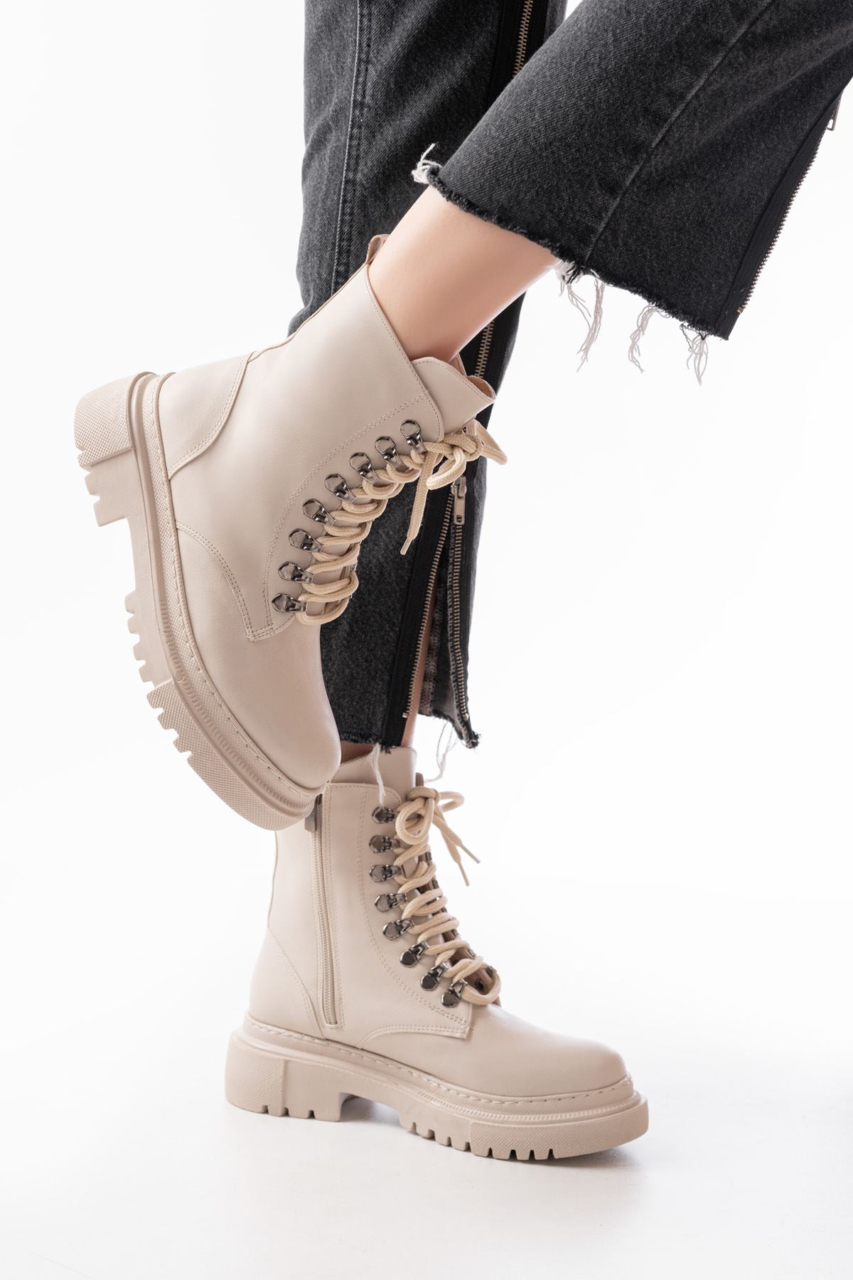 Ayakkabı Aşkı Bej Bağcıklı Fermuarlı Günlük Kadın Bot