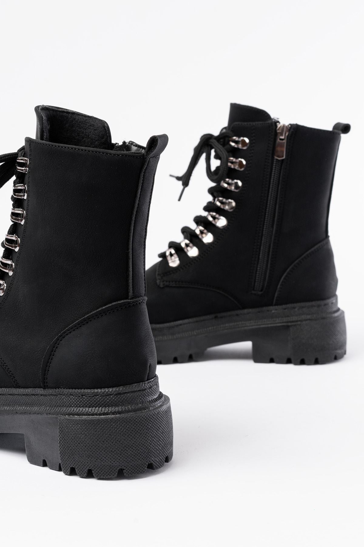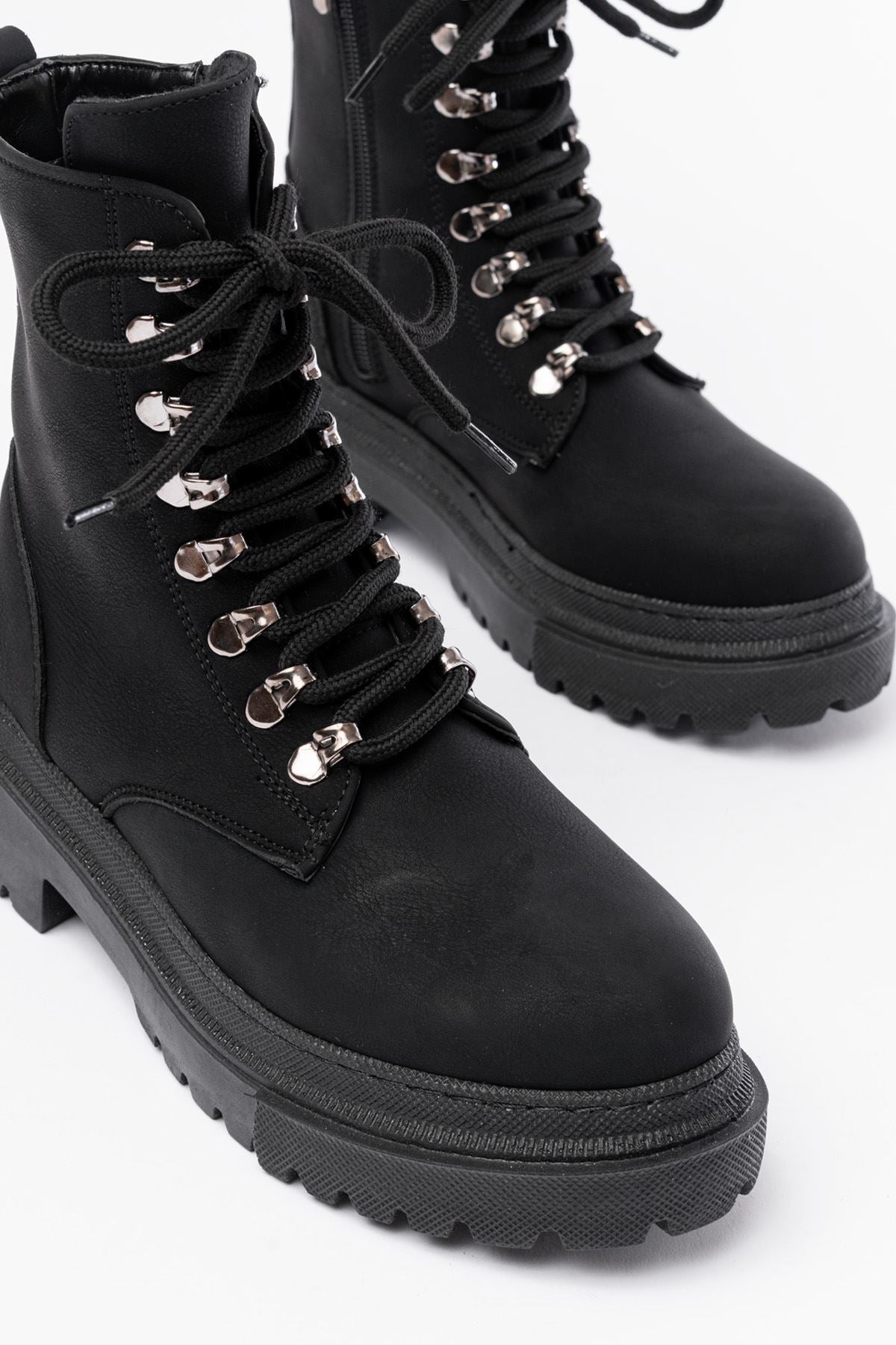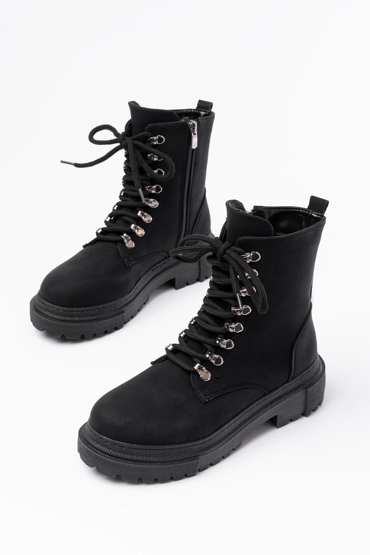 Ayakkabı Aşkı Siyah Zümrüt Bağcıklı Fermuarlı Günlük Kadın Bot