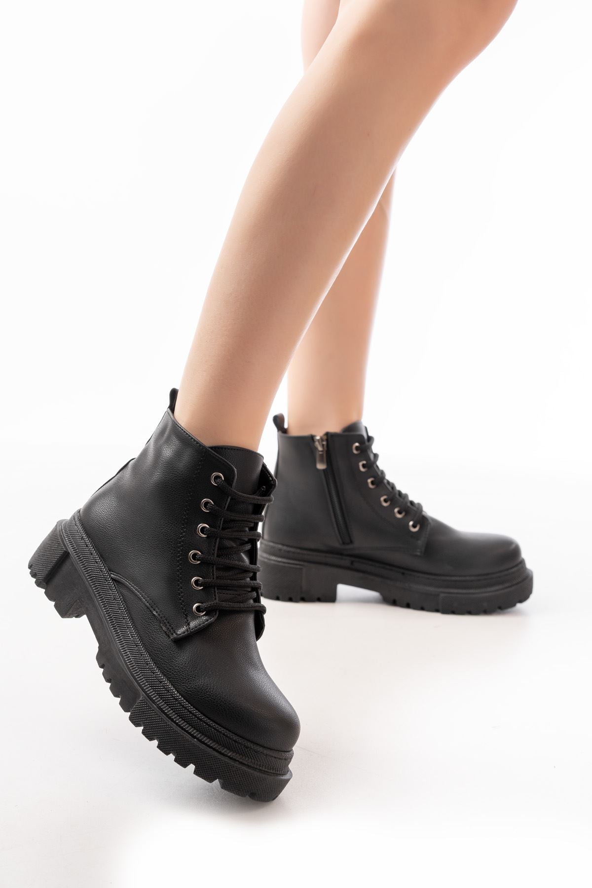 Ayakkabı Aşkı Siyah Bağcıklı Fermuarlı Günlük Kadın Bot