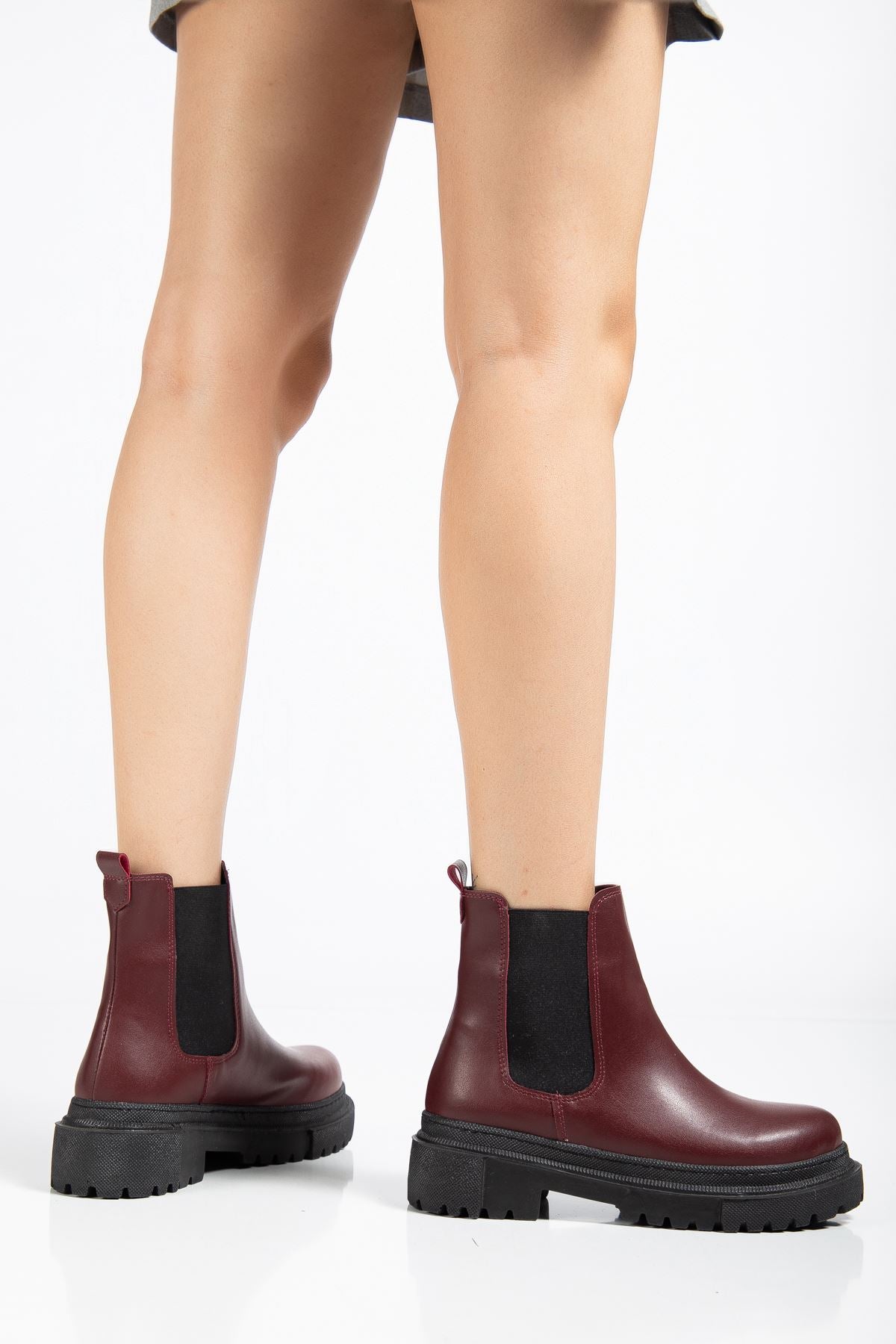 Ayakkabı Aşkı Bordo Lastikli Günlük Kadın Bot