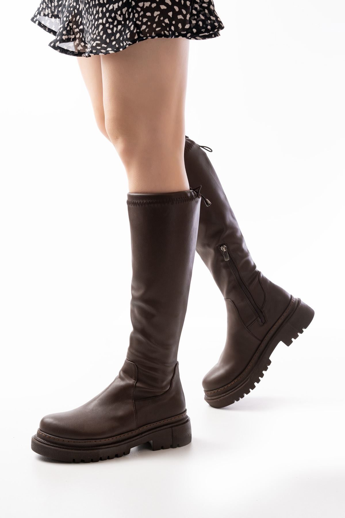 Ayakkabı Aşkı Kahverengi Fermuarlı Günlük Kadın Çizme