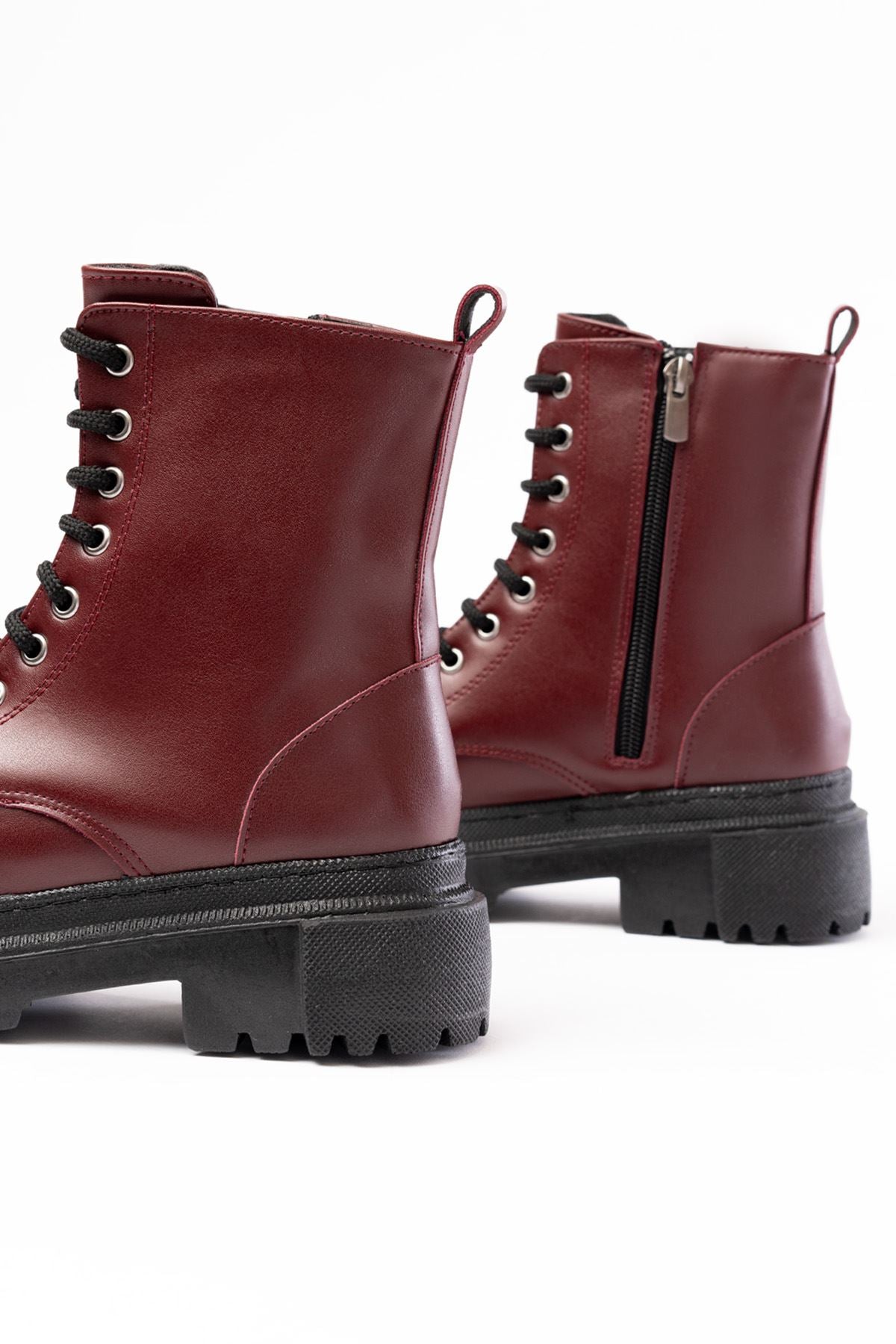 Ayakkabı Aşkı Bordo Bağcıklı Fermuarlı Günlük Kadın Bot