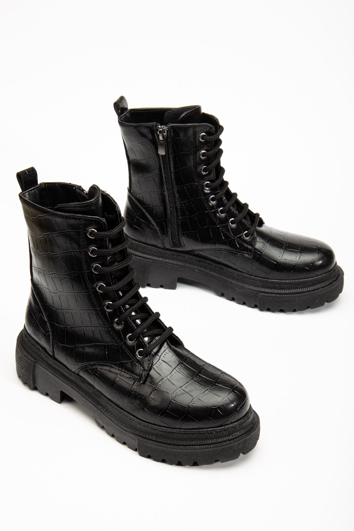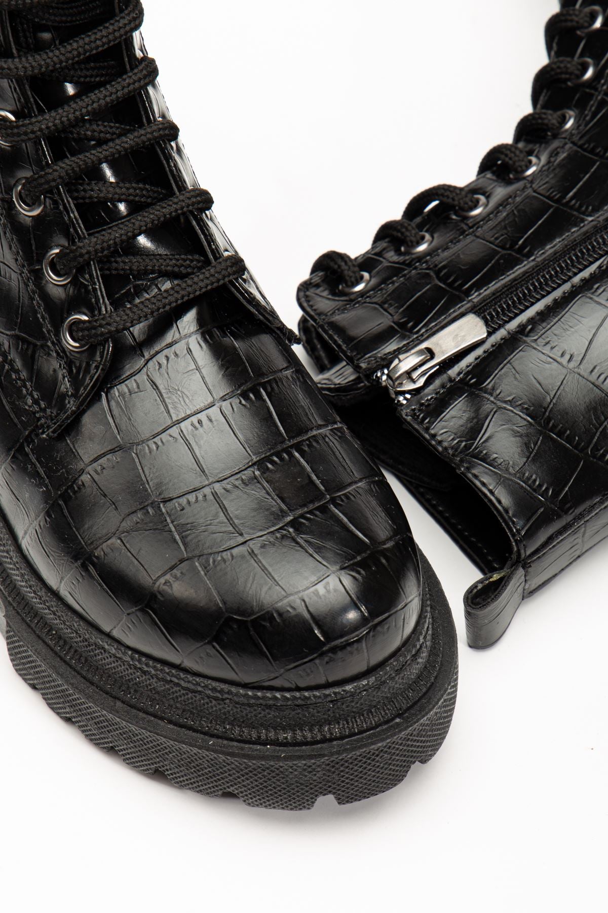 Ayakkabı Aşkı Siyah Kroko Bağcıklı Fermuarlı Günlük Kadın Bot