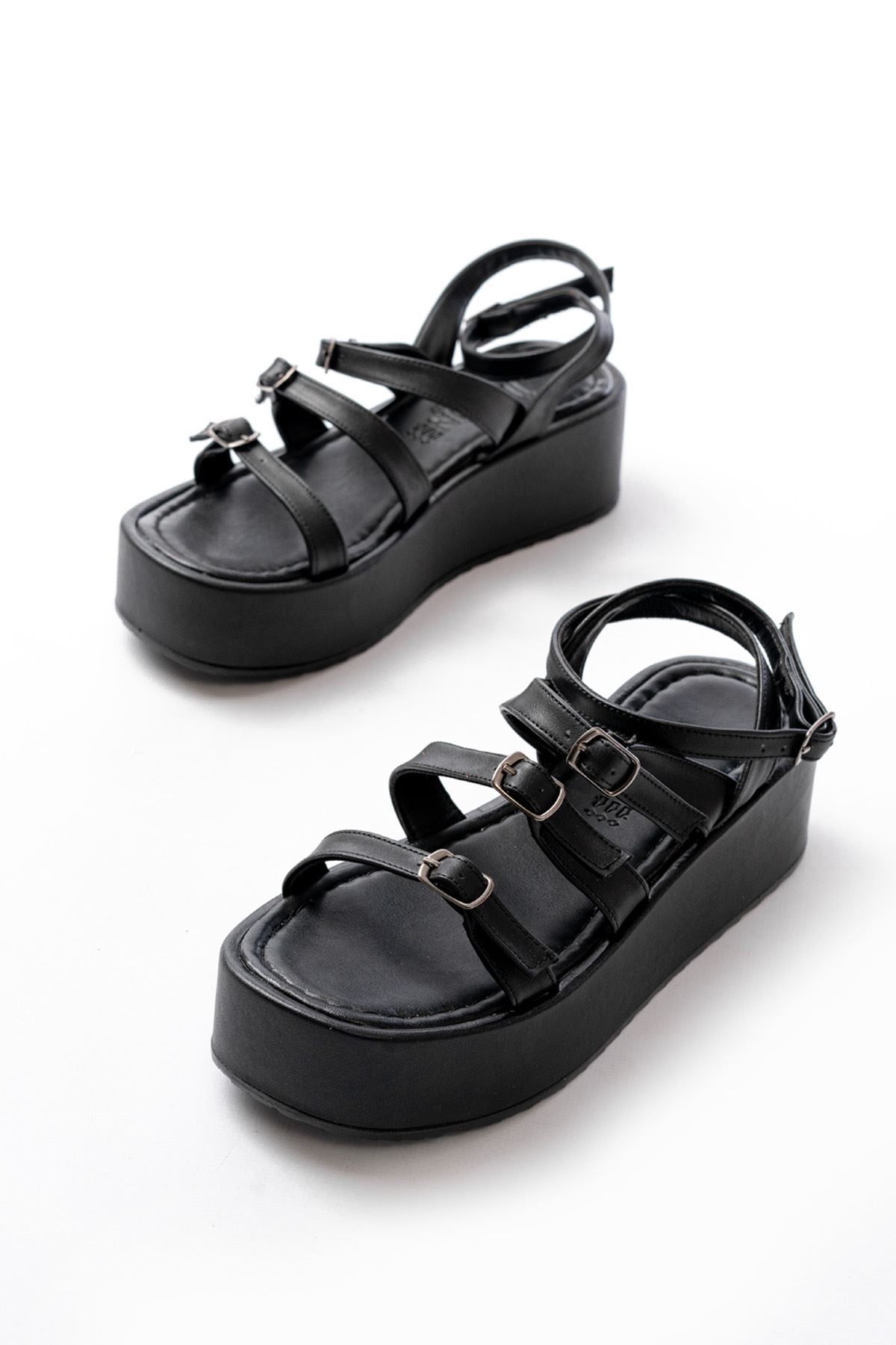 Ayakkabı Aşkı Siyah Tokalı Bilekten Bağlamalı Dolgu Kadın Sandalet