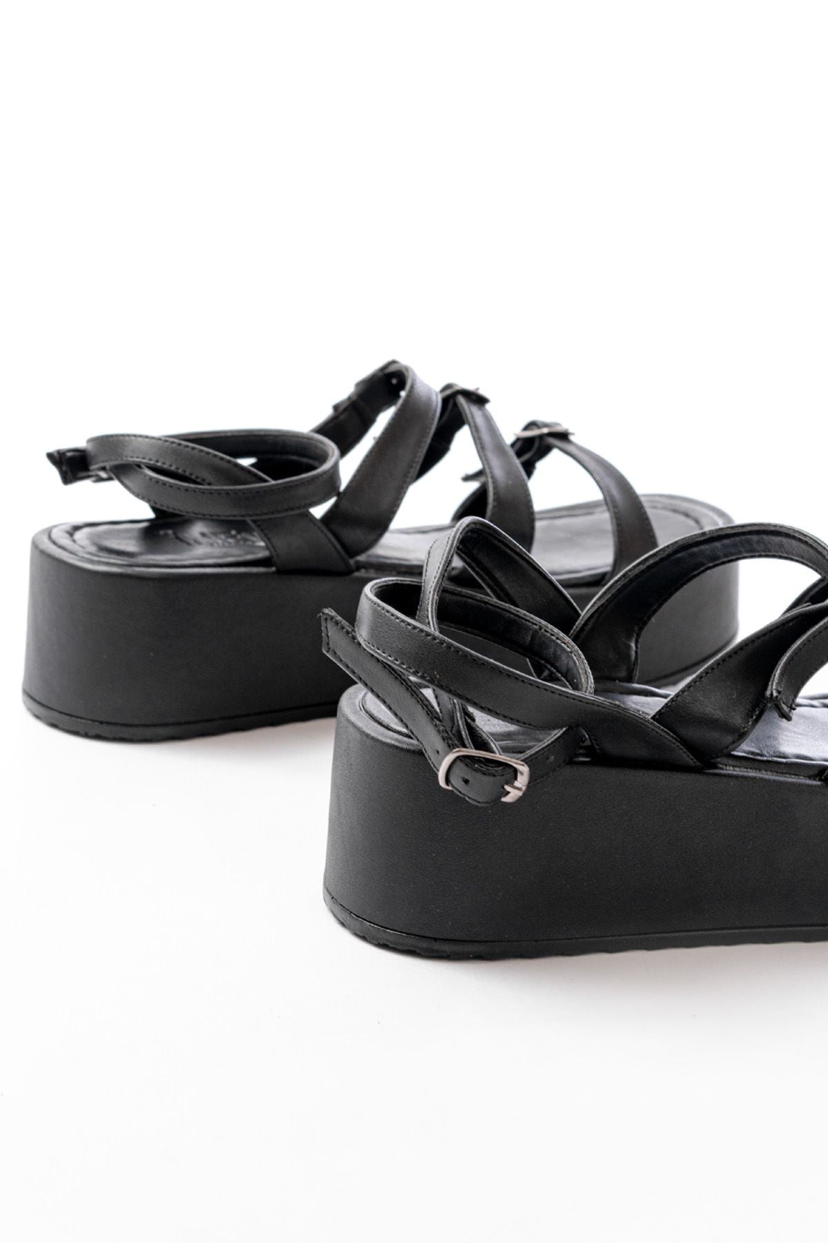 - Şıklık ve konforu bir arada sunan Ayakkabı Aşkı siyah sandalet, günlük kombinlerinize zarif bir dokunuş katar.