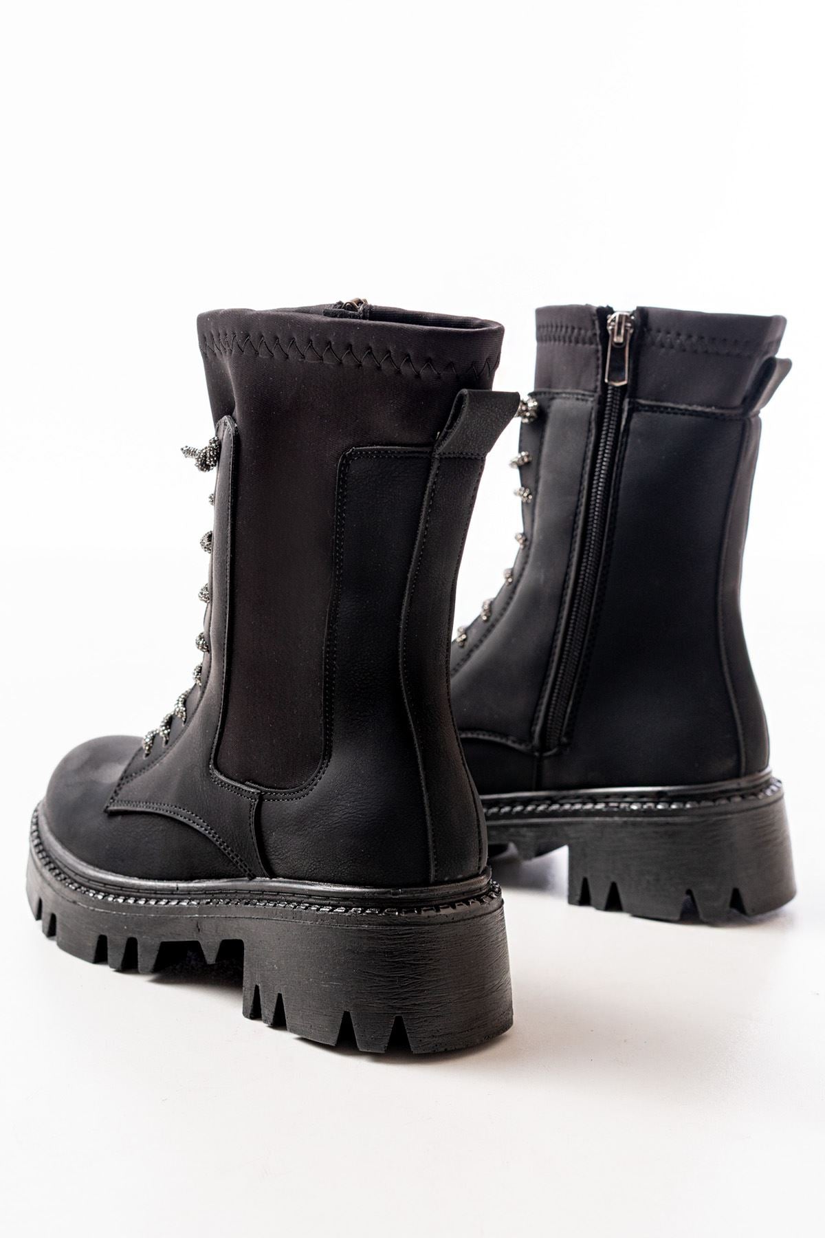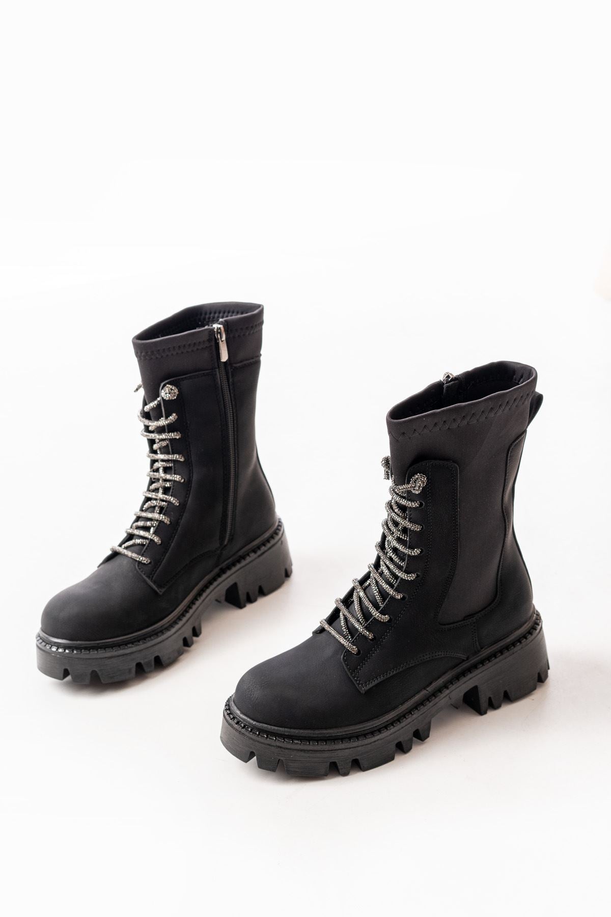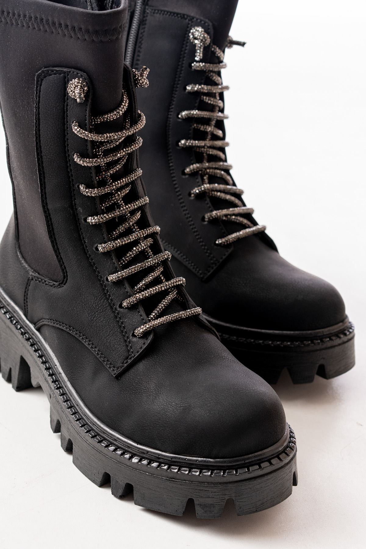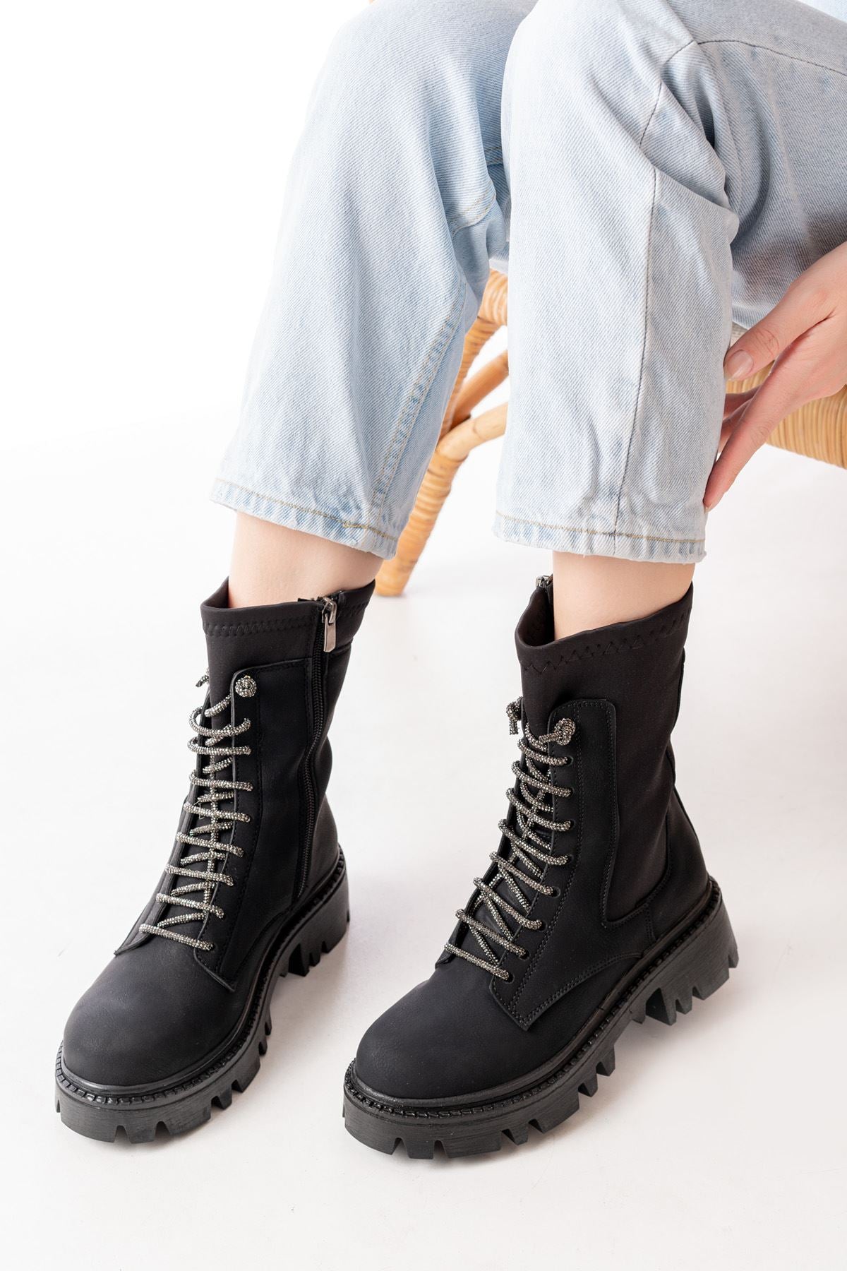 Ayakkabı Aşkı Siyah Zümrüt Düz Topuklu Bağcıklı Fermuarlı Günlük Kadın Bot