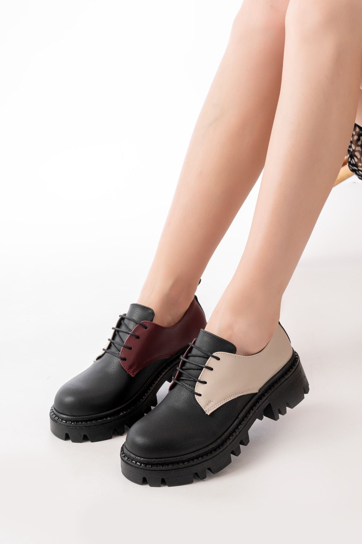 Ayakkabı Aşkı Siyah Garni Bağcıklı Günlük Yüksek Tabanlı Loafer Ayakkabı