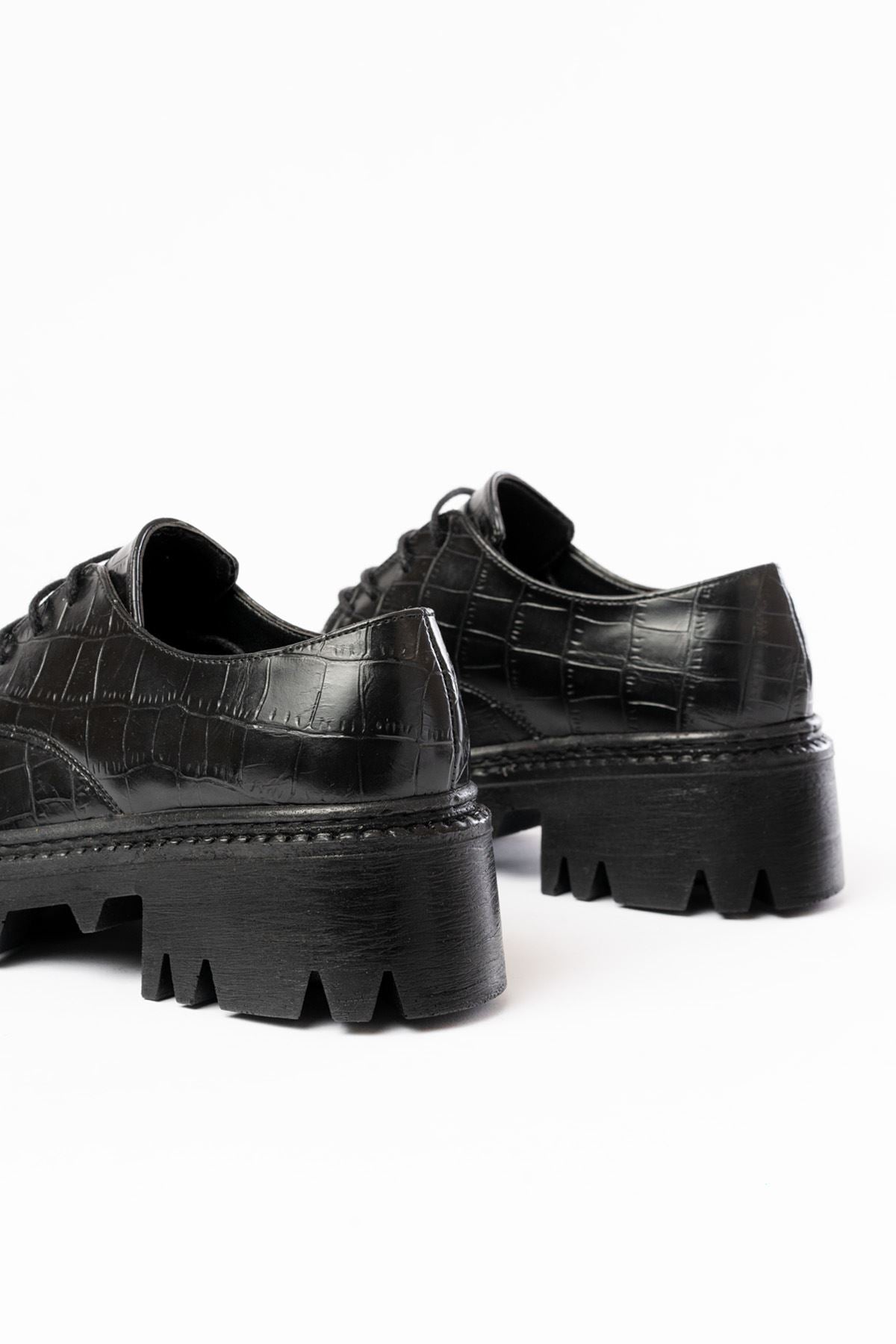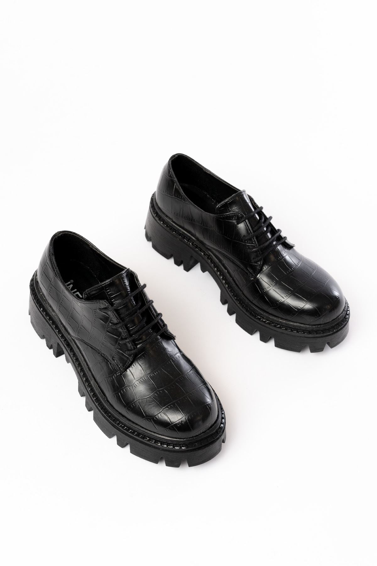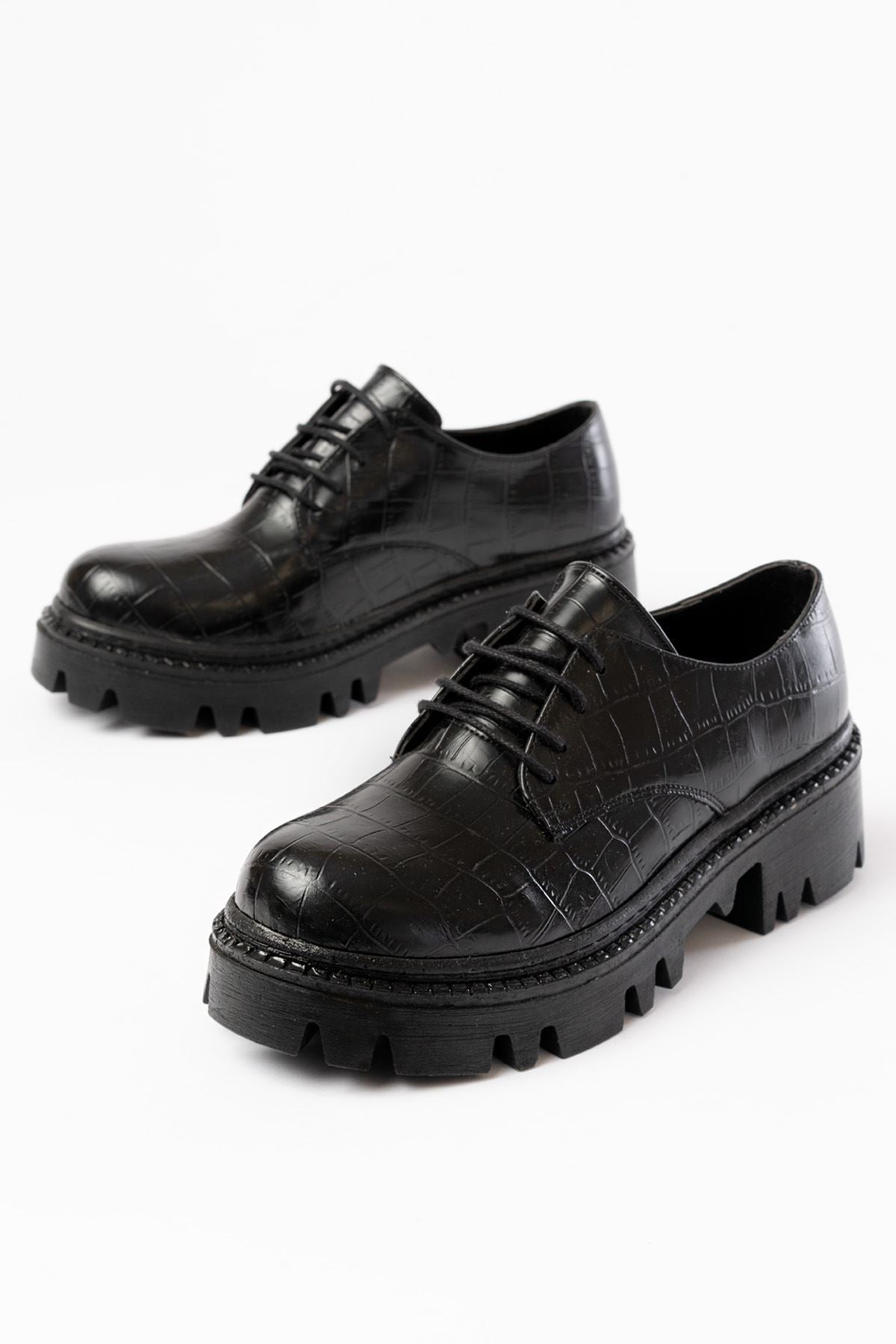 Ayakkabı Aşkı Siyah Kroko Bağcıklı Günlük Yüksek Tabanlı Loafer Ayakkabı