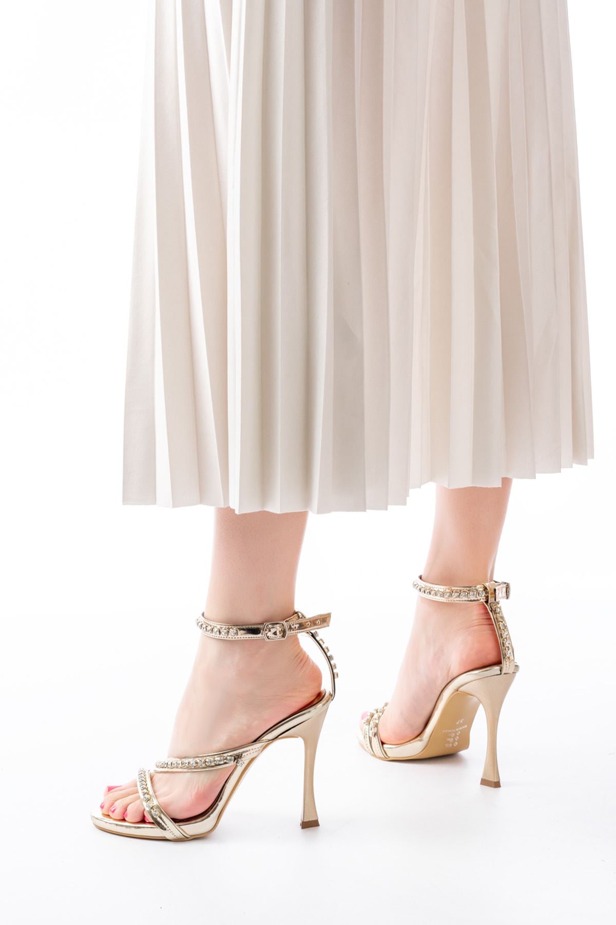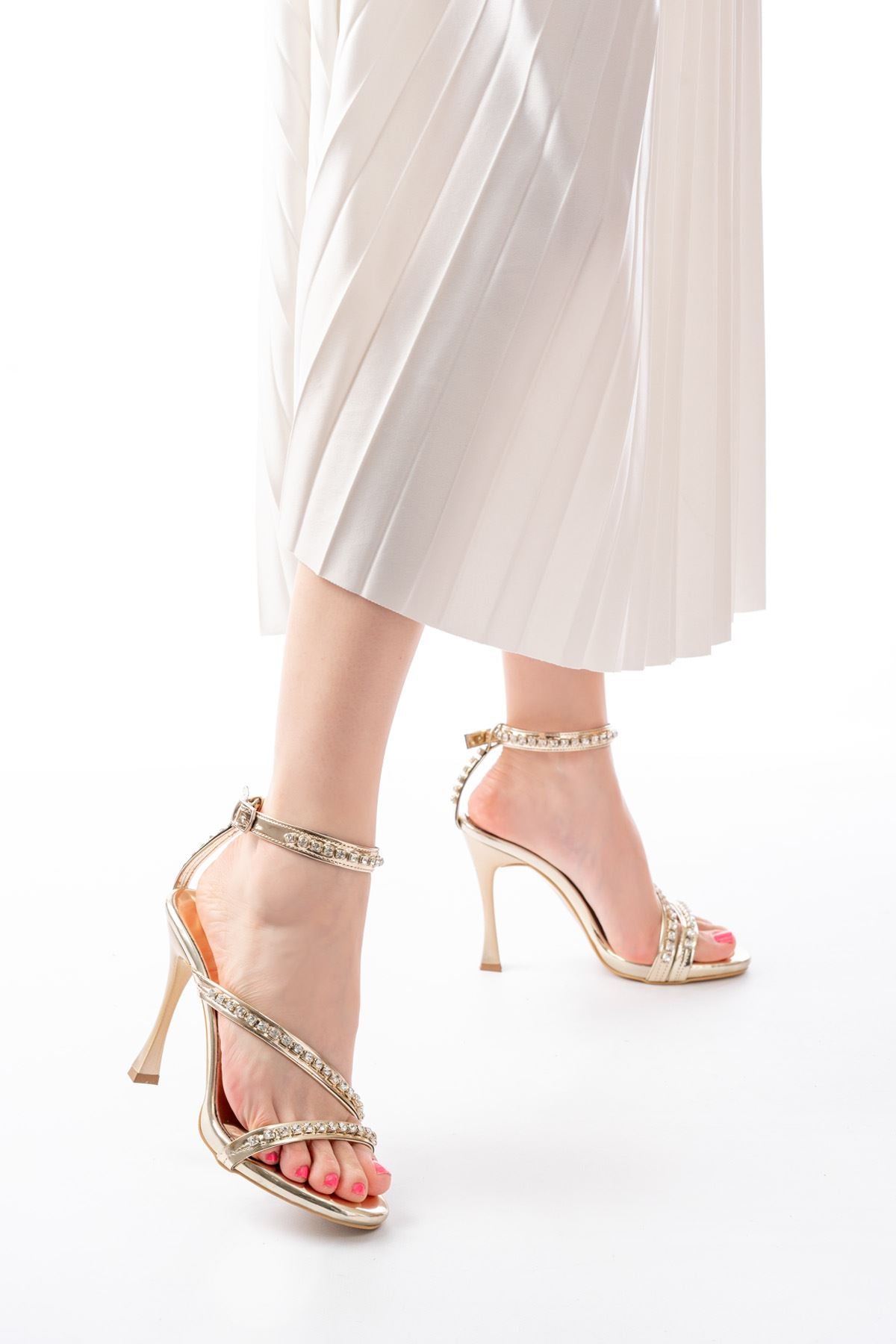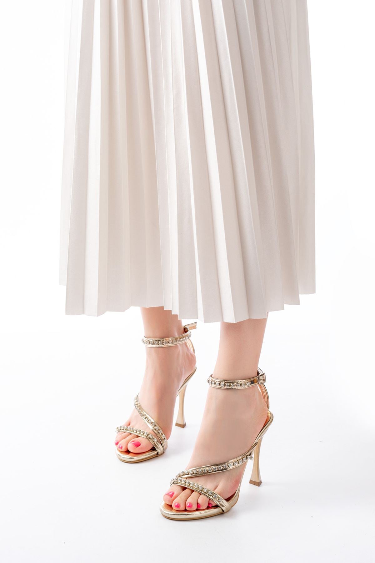 Ayakkabı Aşkı Gold Taşlı Vivet Platformlu Topuklu Kadın Ayakkabı